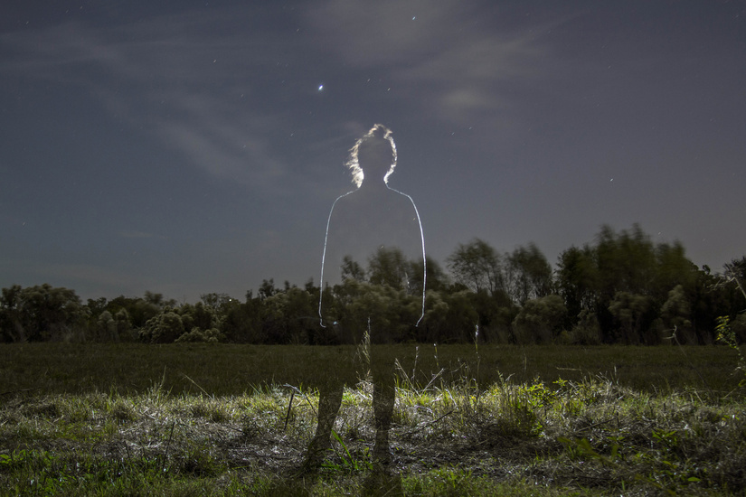 Si les superpositions du photographe américain Andrew Lyman se montrent assez simples à réaliser, l’idée reste belle et juste : limiter les sujets à ligne de lumière dessinant leur silhouette confère aux images une ambiance éthérée à souhait. Comme des persistances rétiniennes d’une présence passée…