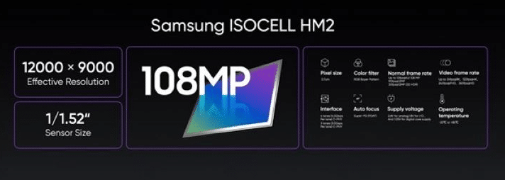 Le nouveau smartphone de Realme sera doté du capteur Isocell HM2 de Samsung en tant que caméra principale. Ce capteur de grande taille (1/1,52 pouce) permet de capturer des images d’une définition de 12 000 x 9 000 pixels et s’appuie sur la technologie du pixel-binning. De plus en plus courante sur les smartphones, elle permet de ne pas shooter en 108 mégapixels, mais d’exploiter la définition du capteur pour proposer des clichés en associant des groupes de pixels. Le realme 8 Pro devrait proposer par défaut des clichés de 12 mégapixels. Realme évoque en effet un binning 9 en 1 des pixels, c’est à dire de combiner 9 photosites par pixel pour améliorer la luminosité en basse lumière. La technique sera associée à l’ISOCELL Plus et Smart-ISO.