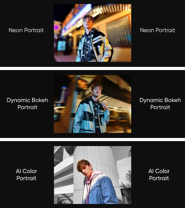 La marque veut aussi s’appuyer sur la photographie de type Tilt-shift, qui permet de mettre en valeur une partie de la photo. À l’image de l’effet Bokeh pour le mode Portrait, il est ici question de garder les autres parties de la photo floutées, sans toutefois se concentrer sur un sujet précis au premier plan. Pour Realme, l’objectif est de « créer une impression de monde miniature » grâce un algorithme présent sur la série realme 8. Différentes options de réglages (forme, angle, position, taille de l’effet bokeh…) seront proposées et le modèle Pro ira un peu plus loin en proposant des vidéos Tilt-shift. Enfin, de nouveaux filtres pour les portraits seront présents.