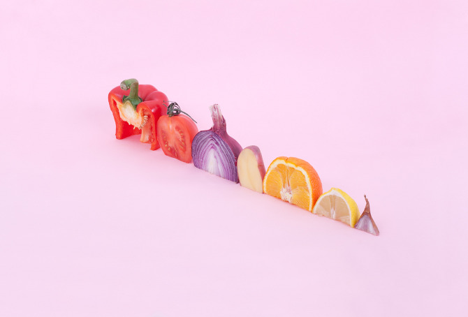 Inspiré par les étalages de la Grande Epicerie de Paris, le photographe Florent Tanet revisite d’une manière très graphique les fruits et légumes, tout en formes et en couleurs. Tranchés, compressés, travaillés… Ces derniers semblent sortis d’un film d’animation.