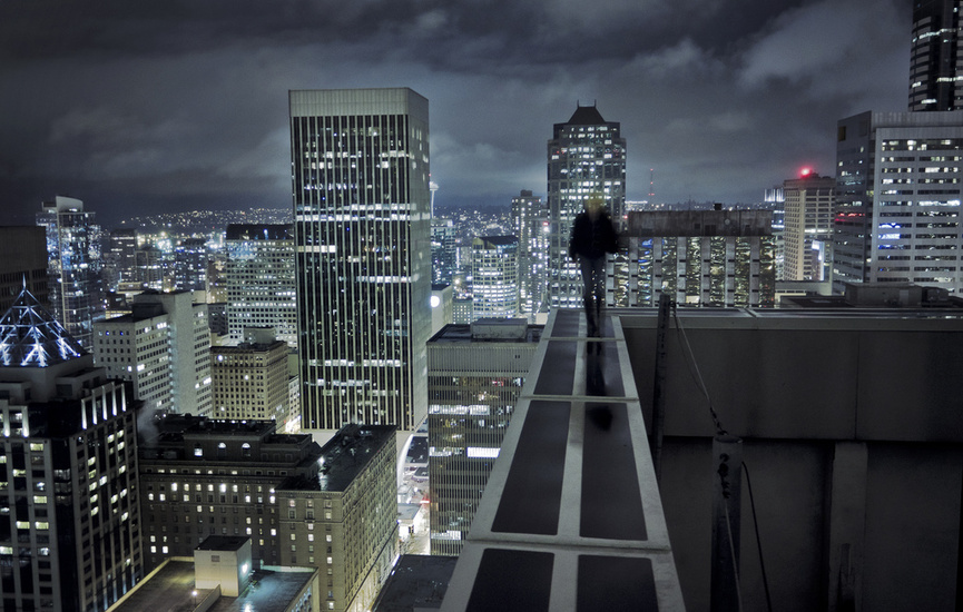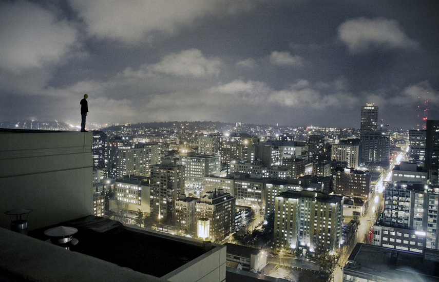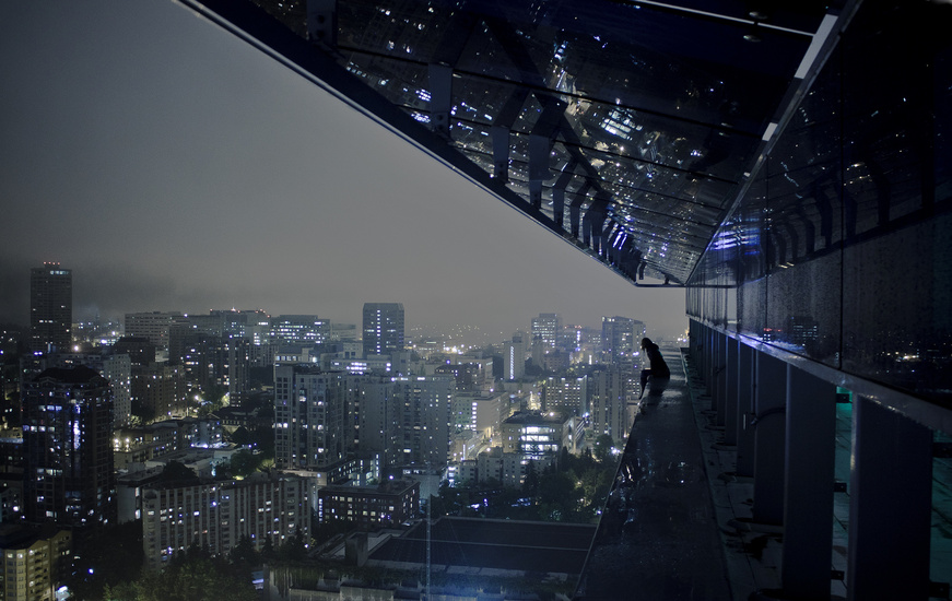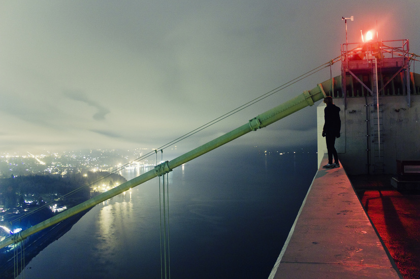 Lumière et infrastructure forment un tout cohérent dans la série Above où la densité de la vie urbaine laisse place à un instant de quiétude en hauteur. Aurelie Curie joue avec l’effervescence de la ville et provoque le vertige par ces modèles aux allures de figures protectrices et solitaires dominant la ville.