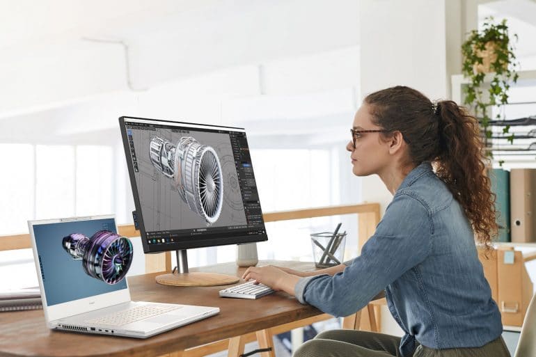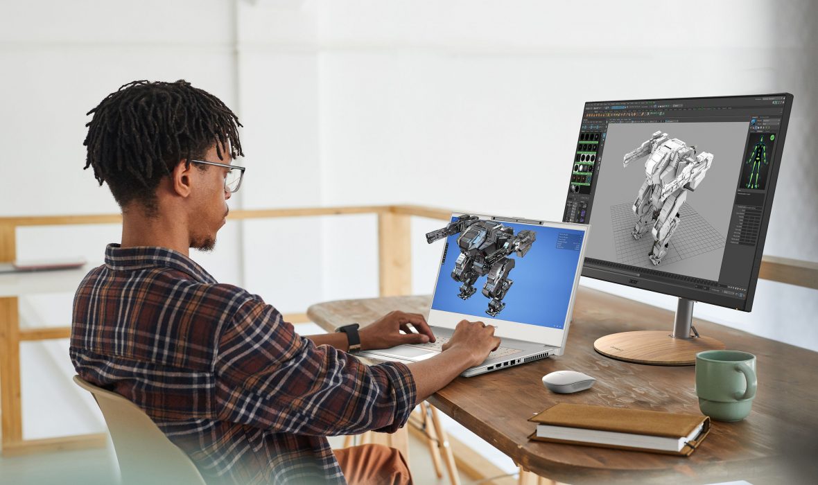Acer suggère une utilisation du ConceptD 7 SpatialLabs Edition en tandem avec un moniteur classique disposant d’un affichage 2D. La création de contenu 3D serait alors réalisée sur ce dernier, et visualisée en temps réel en 3D stéréoscopique sur l’écran intégré à l’ordinateur portable grâce au logiciel SpatialLabs Model Viewer. La marque précise que la conversion de modèles 3D en 3D stéréoscopique est facilitée par les modules de Model Viewer disponibles pour les logiciels Autodesk Fusion 360, Autodesk Inventor, Autodesk 3ds Max, Rhinoceros, Cura, Blender, SketchUp et Zbrush.