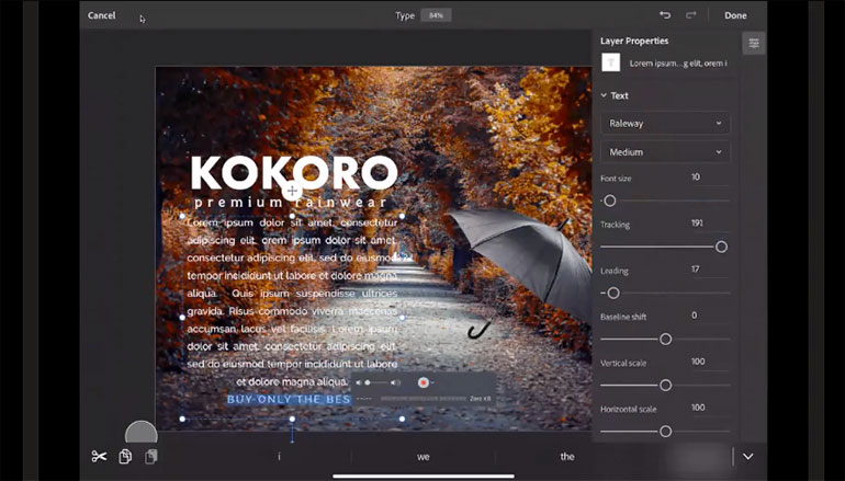 Les fonctionnalités déjà présentes sur la version ordinateur arrivent sur iPad. Il devient désormais possible de définir une valeur pour les options suivantes : Suivi, Interligne, Décalage vertical, Échelle verticale et Échelle horizontale.