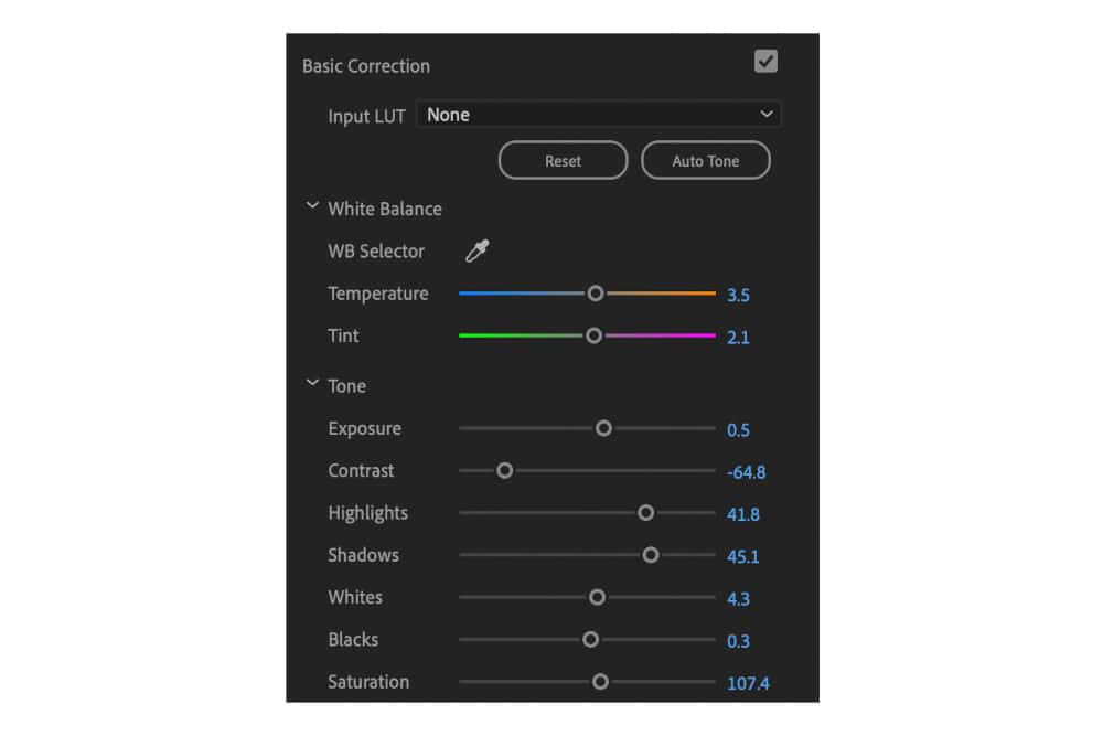 L’utilisateur a bien entendu la possibilité de revenir par la suite sur les réglages effectués. Avec la fonctionnalité Auto Tone, Adobe propose donc aux monteurs d’obtenir en un clic une base de travail qui facilite un étalonnage plus élaboré. Notons cependant que cet outil se trouve à l’heure actuelle limité par son stade de développement. Il se montre ainsi incompatible avec les séquences vidéo enregistrées avec un profil d’image Log.