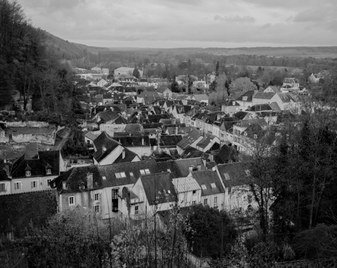 Vue sur les toits de la rue du Général Campenon depuis l'église Saint- Pierre. Série État des lieux, Tonnerre, le 30 novembre 2018 © Jean-Robert Dantou / SACRe-PSL / BNF / Agence VU' -