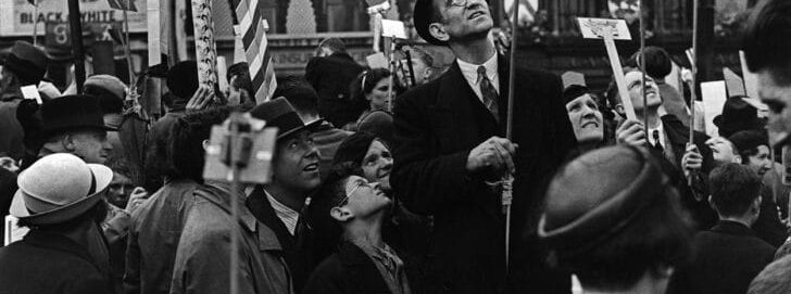 Le couronnement du Roi George VI, le 12 mai 1937 à Londres, fut l’un des événements les plus médiatisés de l’entre-deux-guerres. Employé depuis quelques mois par le tout nouveau journal communiste Ce Soir, Henri Cartier‑Bresson est sur place pour couvrir les festivités. La plupart des autres reporters cherchent à photographier le moment du couronnement, le passage du carrosse ou l’apparition de la famille royale au balcon. Mais ce n’est pas là ce qui intéresse Cartier-Bresson. Bien davantage que le nouveau monarque, il préfère photographier le peuple qui le regarde passer.