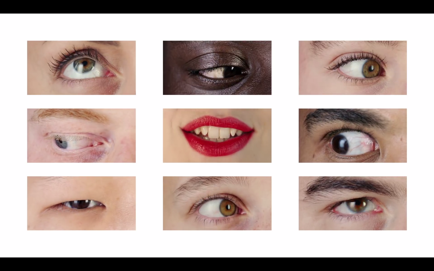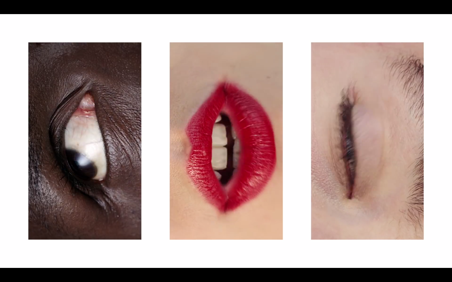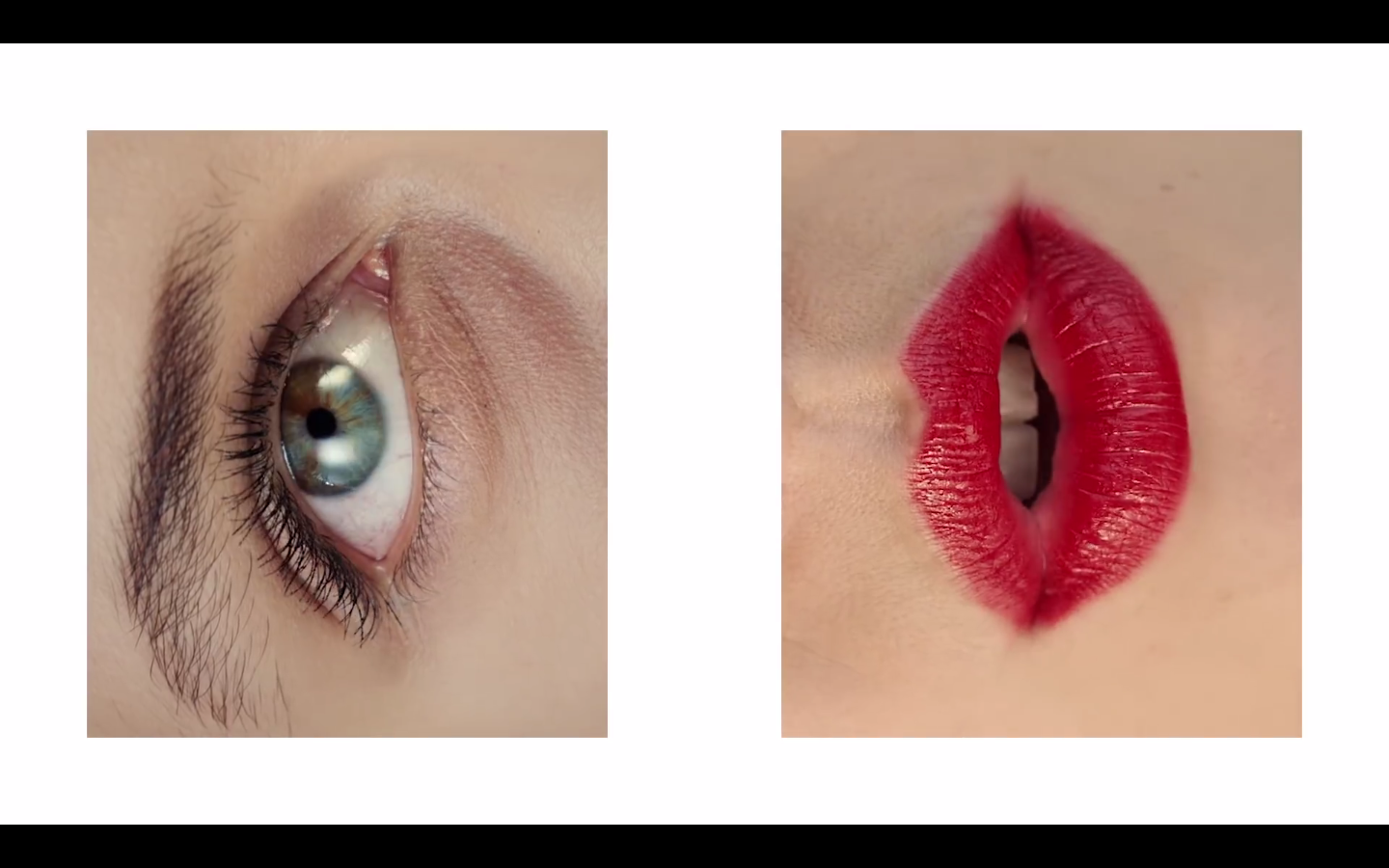 Pas de scènes extérieures cette fois, mais toujours ces images très construites et colorées. À nouveau, la réalisatrice met à contribution des visages inconnus. Dans La Loi de Murphy s’enchaînaient les plans de personnes en train de pleurer. Ici, des yeux de toutes les couleurs battent des cils autour de la bouche d’Angèle dans une sorte de collage surréaliste.