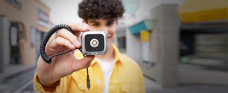 Malgré ces petites dimensions, on trouve un flash LED capable de produire une lumière 4x supérieure à celle du flash intégré de l’iPhone, et une portée 2x supérieure.
