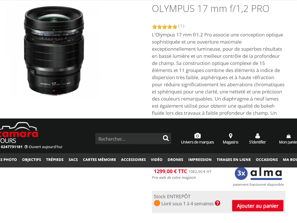 Vends objectif Olympus 17mm f/1.2 PRO TOTALEMENT NEUF: