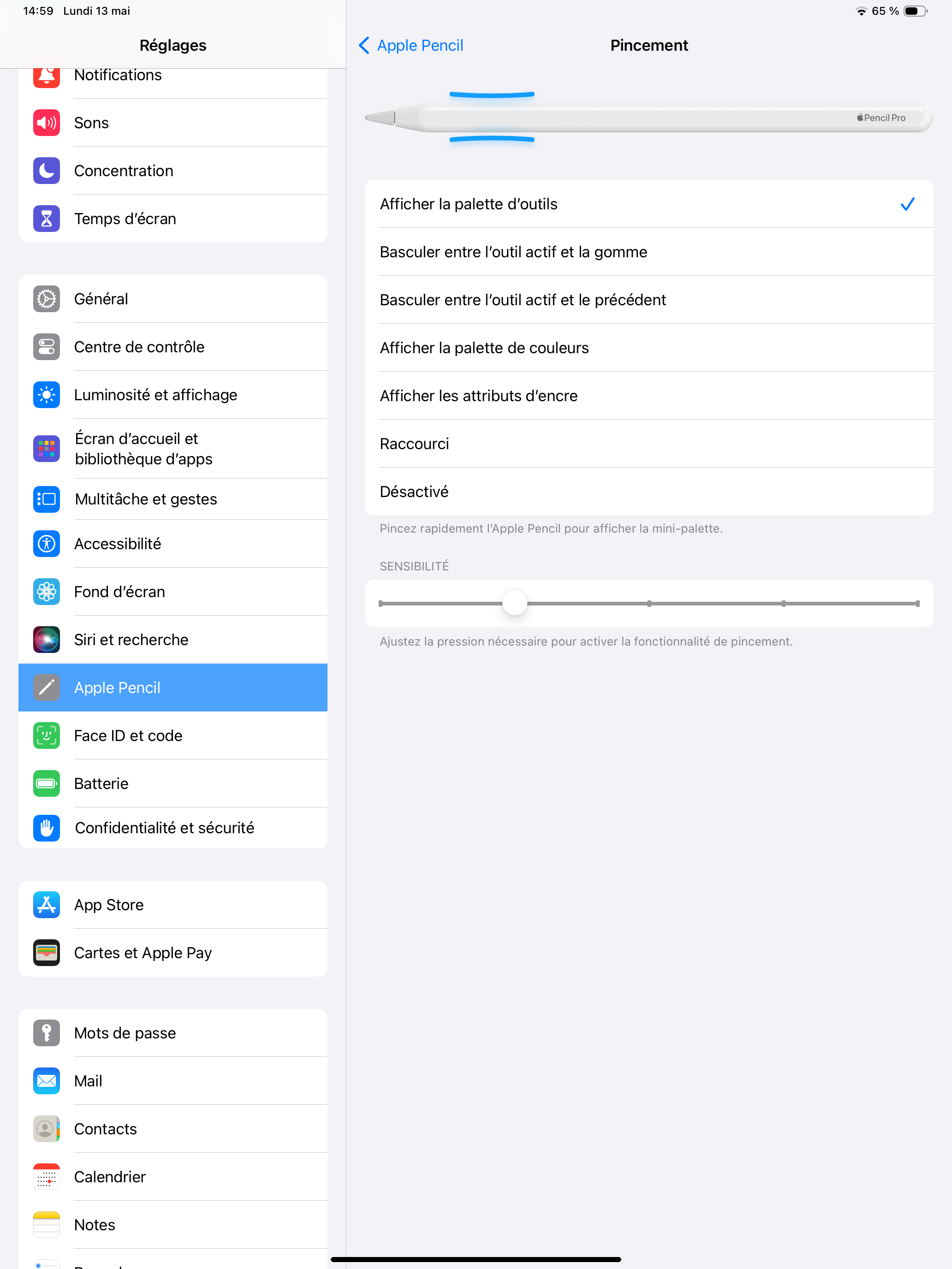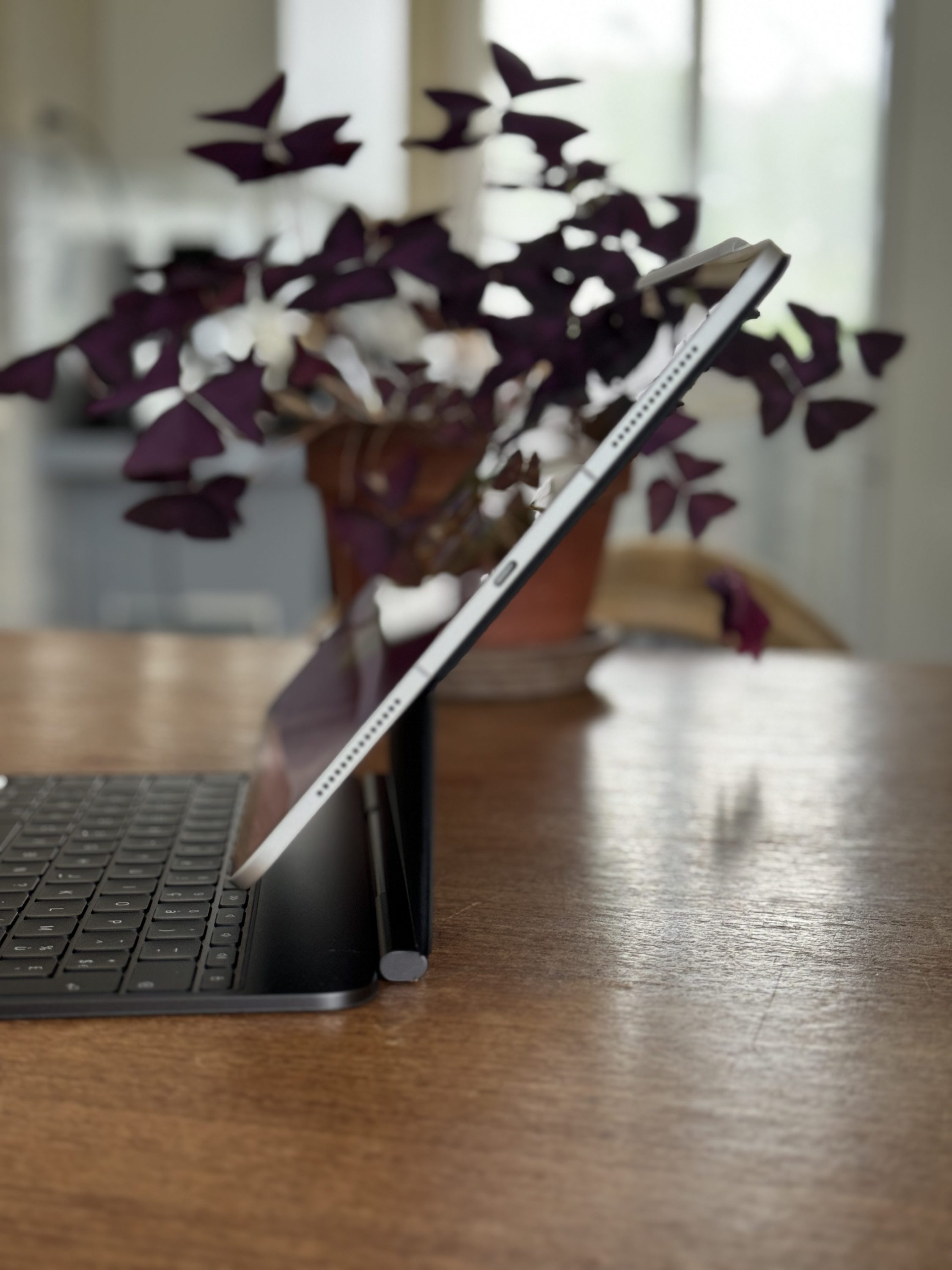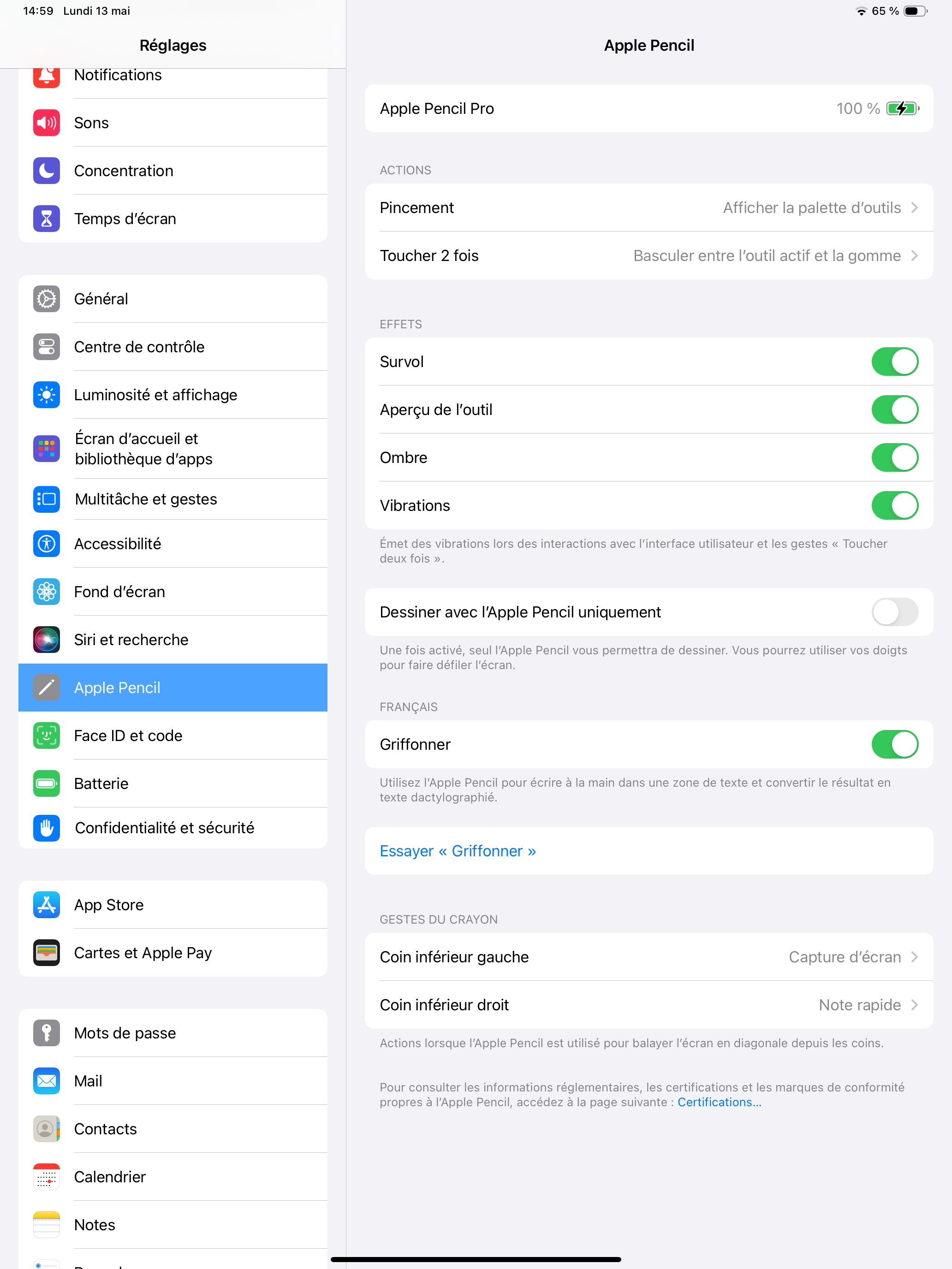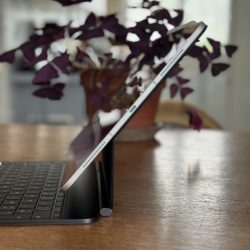 Petit couac, l’iPad Pro 13″ 2024 (M4) est si fin, que le Pencil Pro tombe assez facile lorsque l’on s’en saisit. Petit défaut qui disparait dès que l’iPad se trouve placé dans un Smart Folio ou Magic Keyboard.