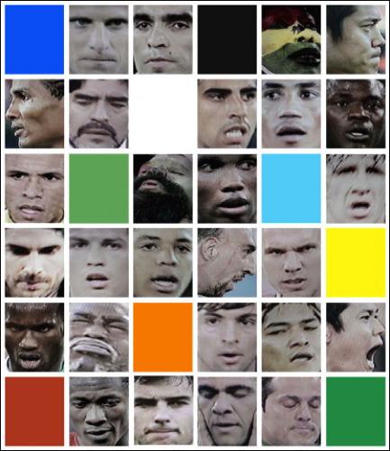Travaillant sur les enregistrements filmiques de l’évènement, Regina Virserius propose une version décontextualisée et fragmentée du Mondial à partir de (très) gros plans sur les visages des joueurs.