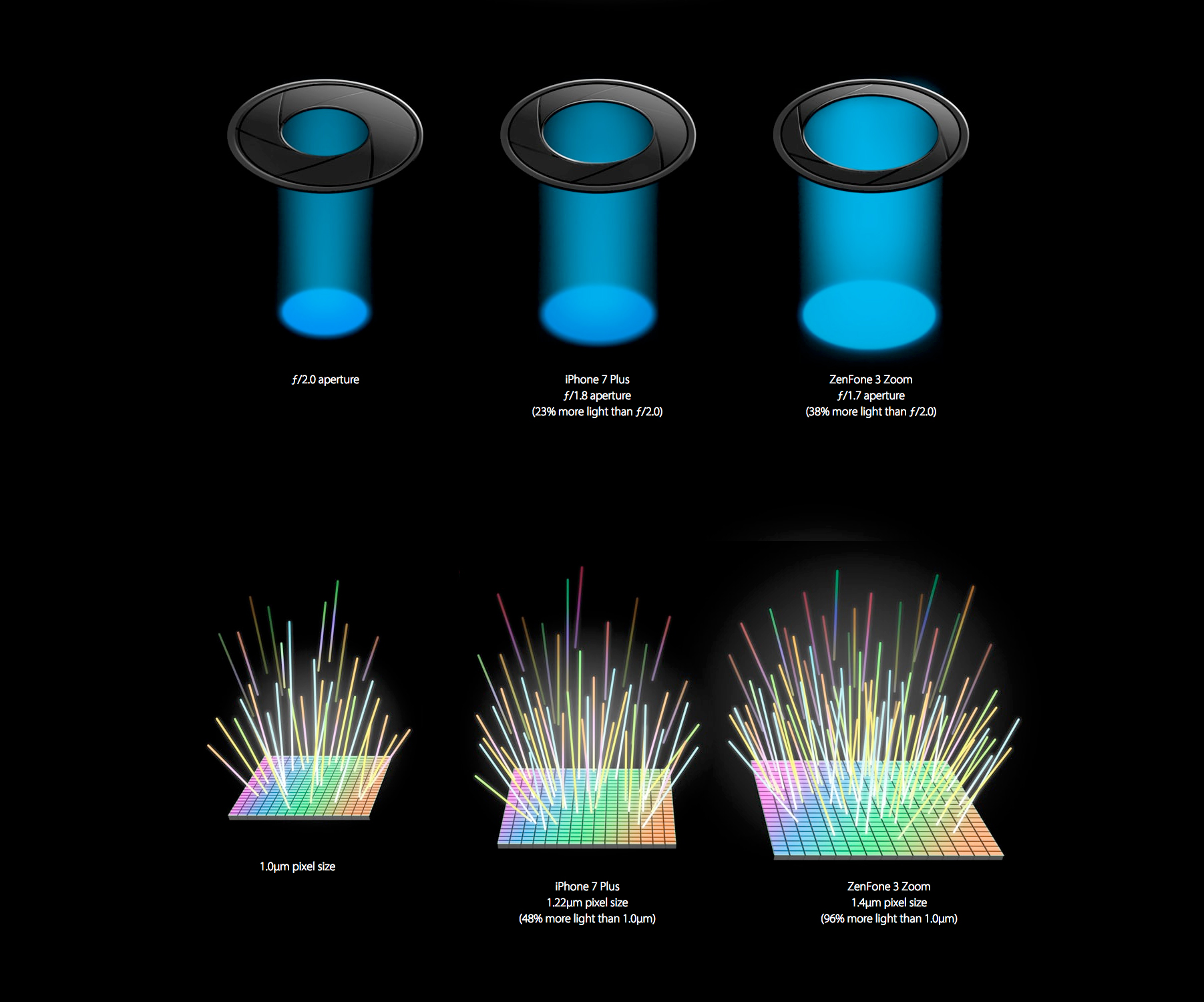 Pour la mise au point, Asus reprend la technologie Dual Pixel AF déjà aperçu ailleurs. Notamment chez Canon et Samsung sur ses Galaxy S7 et S7 Edge. Une technologie d’autofocus qui exploite la détection de phase sur le capteur. Le fabricant taïwanais l’associe à une autre technologie de mise au point : son AF laser de deuxième génération. Une association baptisée TriTech+ Auto Focus qui apporte le suivi de sujet en photo et vidéo avec une mise au point très réactive. Cette dernière est annoncée à 0,03 seconde.