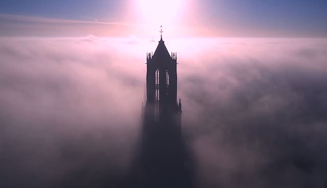 Les vidéastes allemands Jelte Keur et Reinout van Schie ont attendu 10 mois avant de faire voler un DJI Phantom 2 Epic et ainsi capturer le sommet de la cathédrale Saint-Martin d’Utrecht. Une fois les conditions météorologiques parfaites, ils ont fait décoller celui-ci au dessus des nuages. La construction a commencé en 1254 et il aura fallu patienter jusqu’à aujourd’hui pour la découvrir sous cet angle. Des images magnifiques où le sommet de la cathédrale émerge d’une mer de nuages…