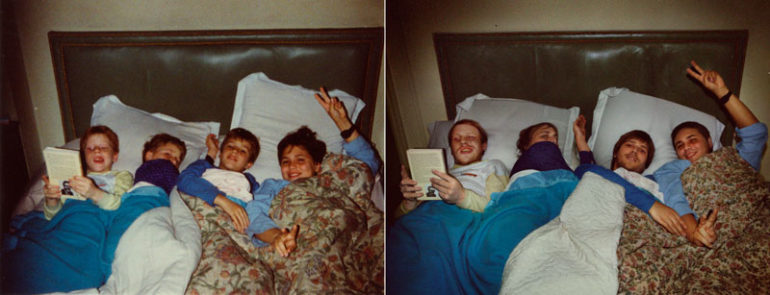 De quoi s’agit-il? De reconstitutier à l’identique des photos d’enfance: mêmes décors, mêmes poses, mêmes couleurs (aujourd’hui dites « vintage »), mêmes modèles… avec juste vingt ans de plus. Le résultat est beau, amusant, presque romantique et assez émouvant.