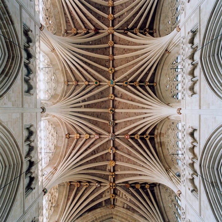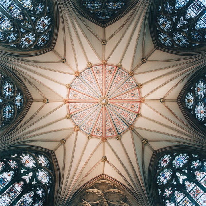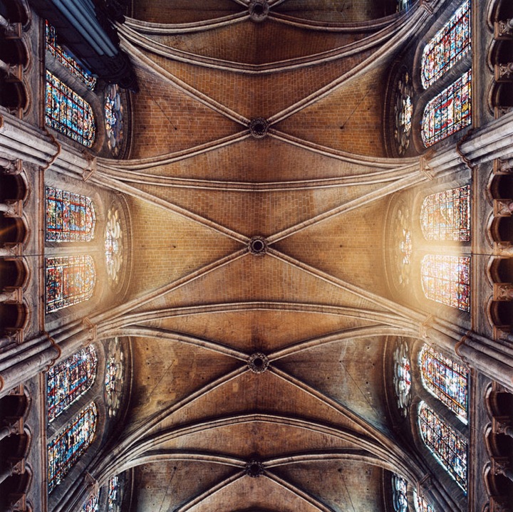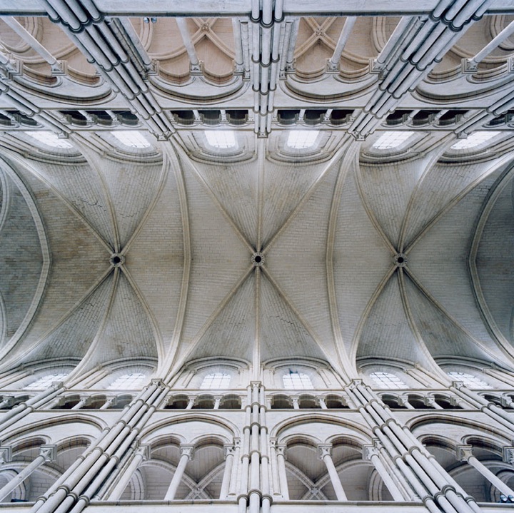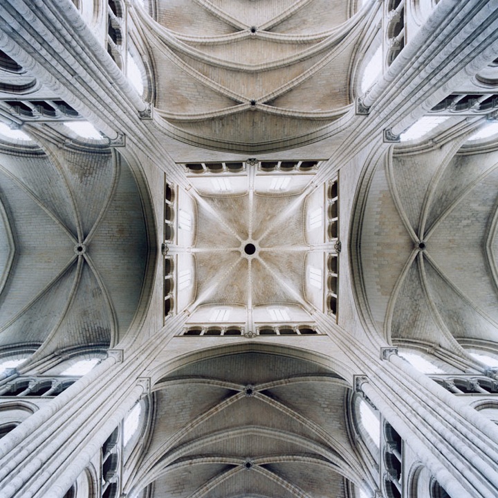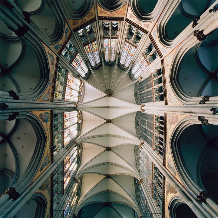 Réalisés entre 2003 et 2009 ces clichés de plafonds de pierres, pourtant pris en intérieur, paraissent aériennes et donnent un aperçu presque palpable de l’architecture gothique : une vraie beauté se dégage des formes de courbes géométriques, dans ses multiples variations et la répétition d’ éléments simples. Le travail sur les couleurs ressort magnifiquement, de simples plafonds prennent vie et semblent nous raconter une histoire. Le format carré des photos, prises à l’épicentre du dôme, donnent l’impression d’observer un tableau avec un effet de profondeur, pour un rendu kaléidoscope juste hallucinant.