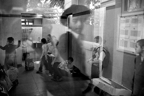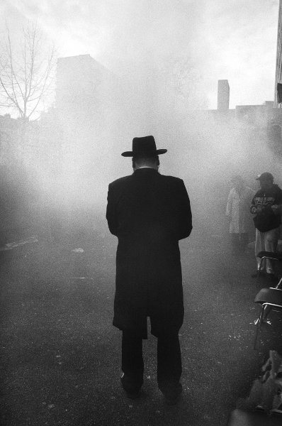 Dans le cadre de cette série, c’est un rabbin qui était venu à l’exposition sur le métro. Il m’a demandé d’aller photographier la communauté juive orthodoxe. Le rapport est différent parce que je suis « invité », mais je photographie pourtant exactement de la même manière que dans le métro : j’aime les photos prises sur le vif, des instants sans aucune mise en scène. La seule exception dans mon travail est peut être la série Les Fusillés car ce sont des images capturées sur le tournage du film éponyme. De fait, il y a de la mise en scène. Mais dans laquelle je n’interviens pas et où j’ai pris ma liberté en shootant à la volée, comme dans mes autres séries.