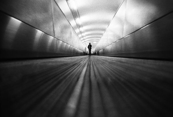 Je travaille uniquement en argentique et en noir et blanc. Mon idée est de rentrer en immersion dans des univers qui sont clos ou difficiles d’accès et qui sont à la fois familiers et insolites. Le métro, par exemple, est un univers où il y a une unité de lieu, la lumière est toujours la même, c’est donc un espace clos dans ce sens là. Mais je me suis intéressé aussi à des univers clos dans le sens « inaccessible », comme la communauté juive orthodoxe de Paris avec la série Farbrenguen qui est encore en cours. Là, j’ai enfoncé des portes qui d’ordinaire restent plutôt hermétiques. C’est un travail qui me plait beaucoup. Le fait de faire des photos devient une excuse pour découvrir des endroits qui sont normalement clos et observer les gens.