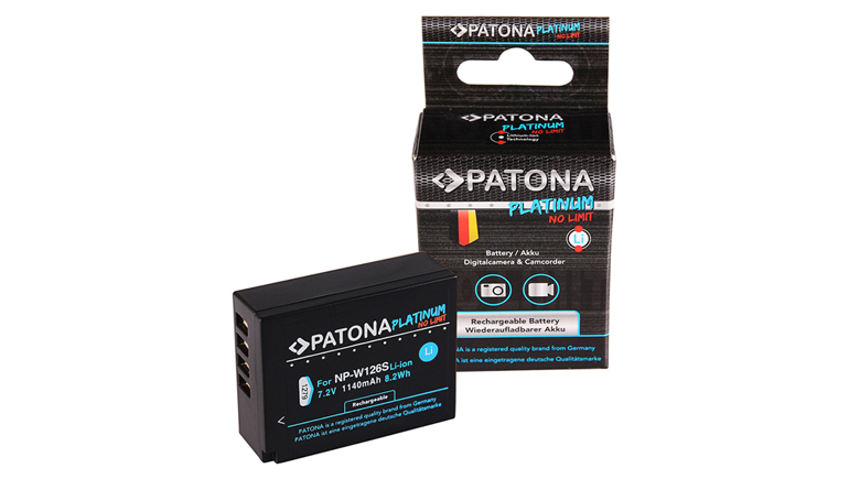 Le fabricant Patona, bien connu pour ses batteries compatibles, propose des modèles génériques “platinum” pour les batteries NP-W126S des appareils Fuji.