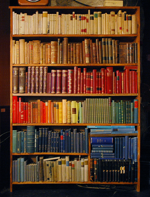 Un nuancier en main et une bibliothèque à classer. Chouette idée 😉