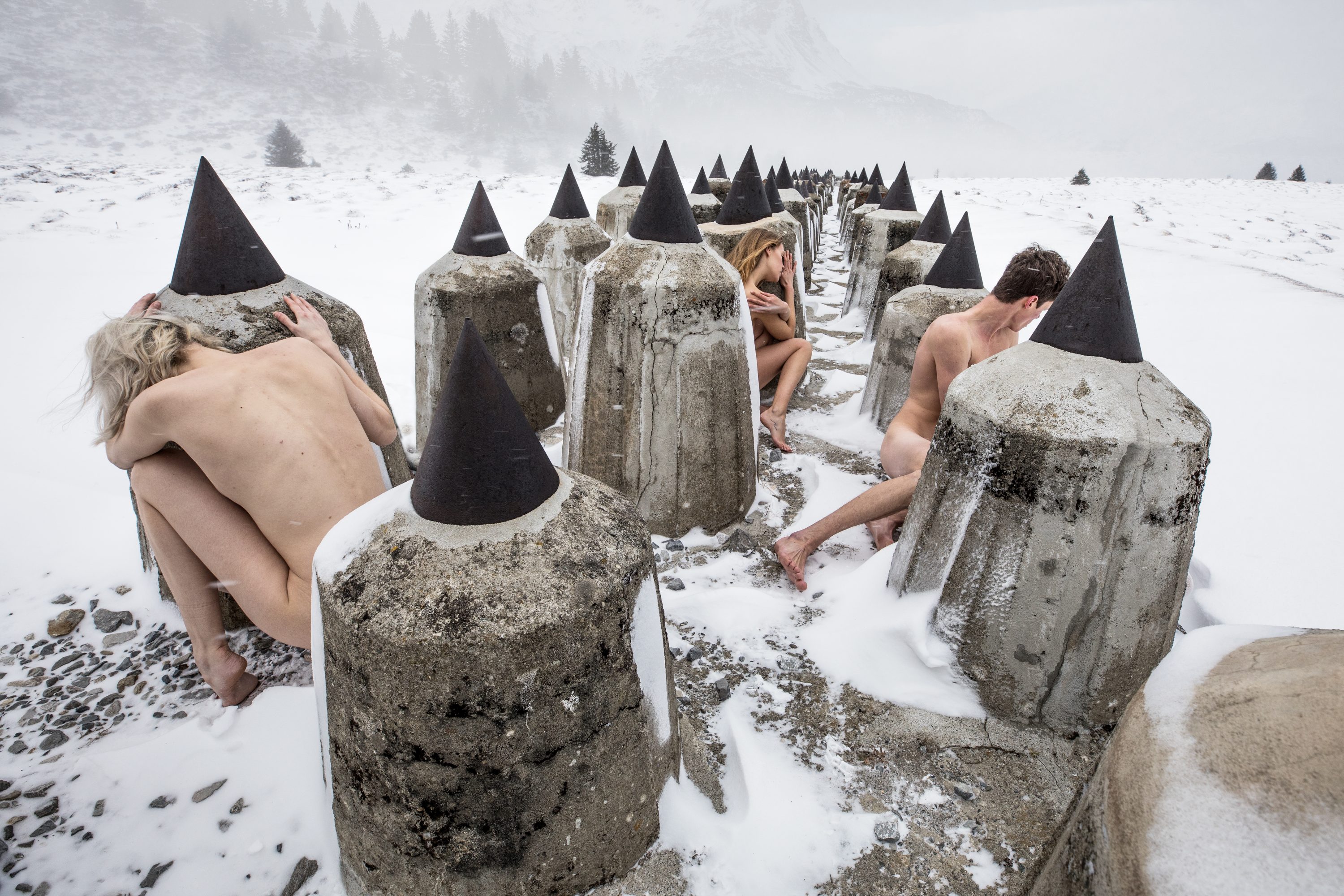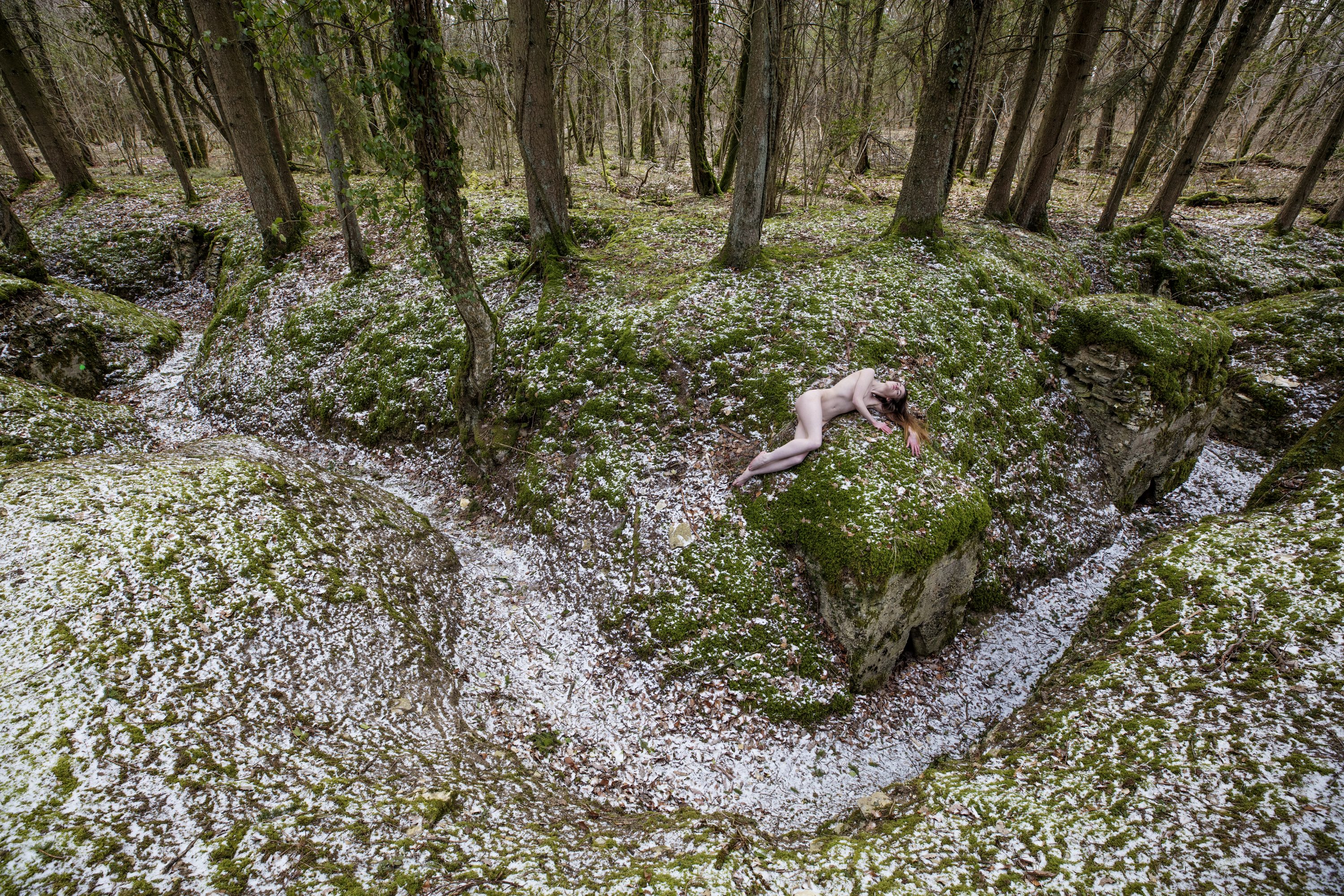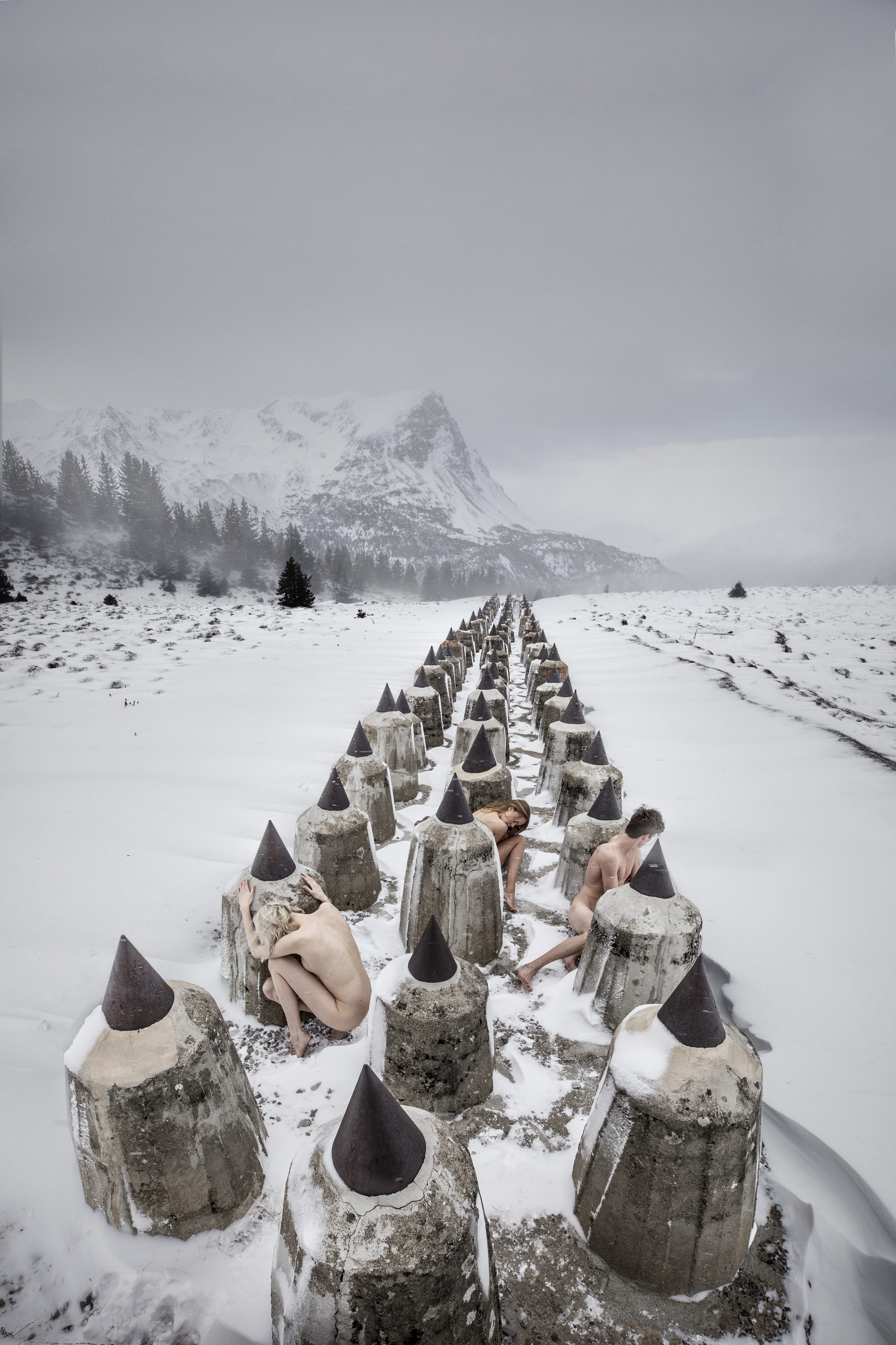 Mais plus que tout, l’oeuvre de Sunyé est ici une réflexion sur la fragilité de la paix, la vulnérabilité de cette quête. Une cinquantaine de photographies, en couleurs ou en noir et blanc, montrent des corps nus perdus dans la nature. Métaphore d’une humanité effrayée et fragilisée, Black Holes montre des corps en survie, en lutte, en quête de remèdes pour soigner des blessures à la fois collectives et intérieures.