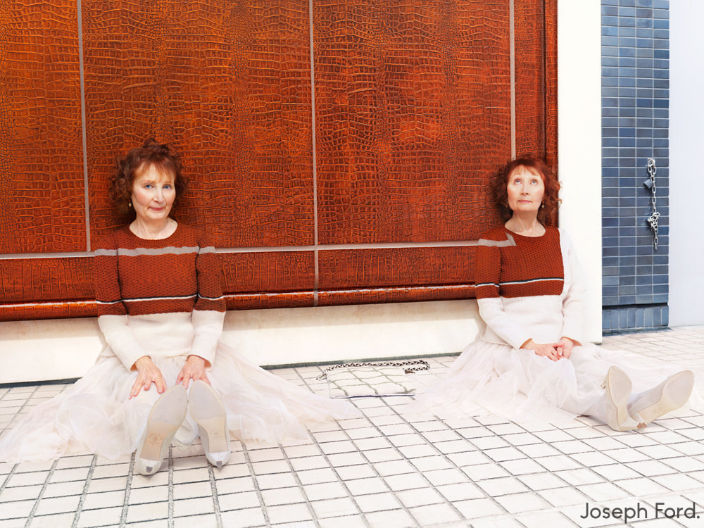 Quand un photographe rencontre une tricoteuse, la collaboration promet d’être intéressante. Pendant quatre années, Joseph Ford et Nina Dodd ont travaillé sur la série Knitted Camouflage – comprenez du camouflage tricoté. Nina Dodd, aka The Duke of Woollington, a reproduit en tricot les motifs de décors où Joseph Ford fait ensuite poser les modèles. Sur son site, la spécialiste de la laine explique avoir eu l’idée de réaliser un pull reprenant le motif d’un siège suite à ses nombreux trajets en bus. C’est suite à sa rencontre avec Joseph Ford que l’idée de la série a germé dans leur esprit.