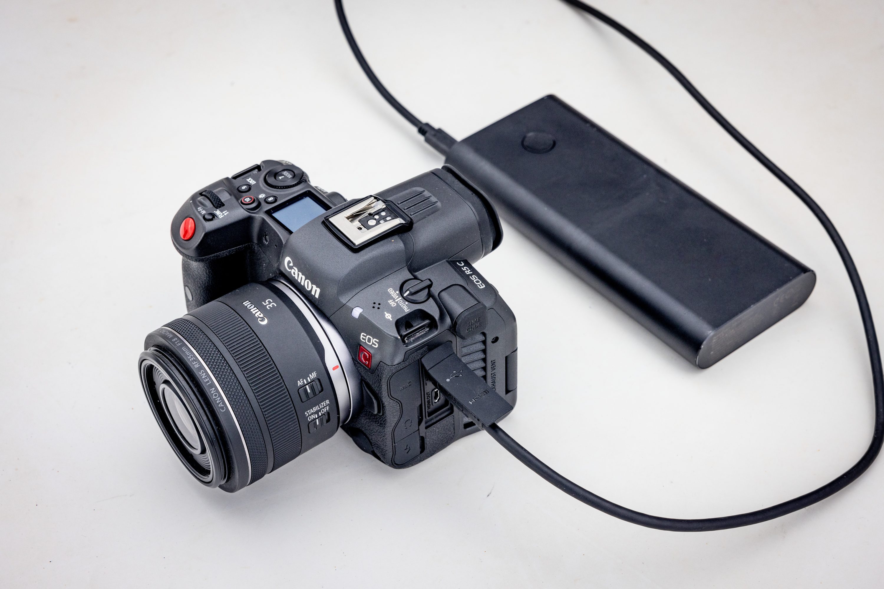 Preuve de ses capacités vidéo de haut vol, en ligne directe de la gamme EOS Cinema, le R5 C enregistre directement du RAW 8K 30p en interne, et jusqu’à du 60P lorsqu’il est branché à une alimentation externe (le tout sans crop). Pour cette dernière Canon propose une alimentation externe sous la forme d’un adaptateur électrique. L’alimentation via une batterie externe est également proposée. L’utilisation de la stabilisation implique une réduction du champ de 70% ou 90% en fonction de la puissance de stabilisation choisie.