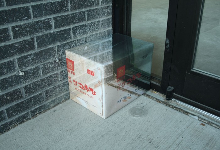 Photographe, vidéaste et sculpteur, Cayetano Ferrer use d’un camouflage élaboré pour rendre les objets choisis (panneaux et boîtes en carton) invisibles. Le trucage est simple : le photographe prend sa photo derrière l’objet en question puis applique le résultat sous forme d’une image autocollante de grande qualité sur ce dernier.