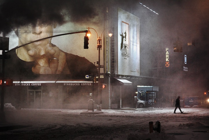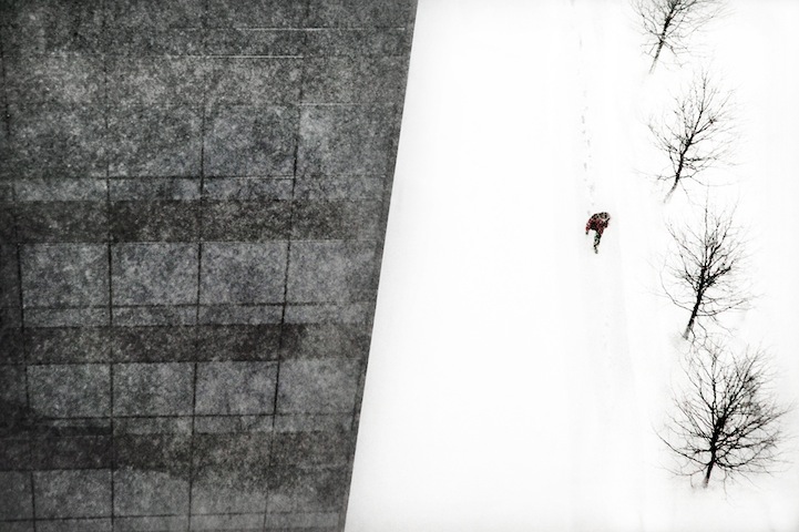 Un lundi matin d’automne comme les autres, triste et gris. Heureusement pour nous le photographe français Christophe Jacrot passe par là pour émerveiller ces moments forcés, un peu rapides, sous la pluie et la neige, et envelopper ces silhouettes aux allures de fantômes d’un voile romantique.