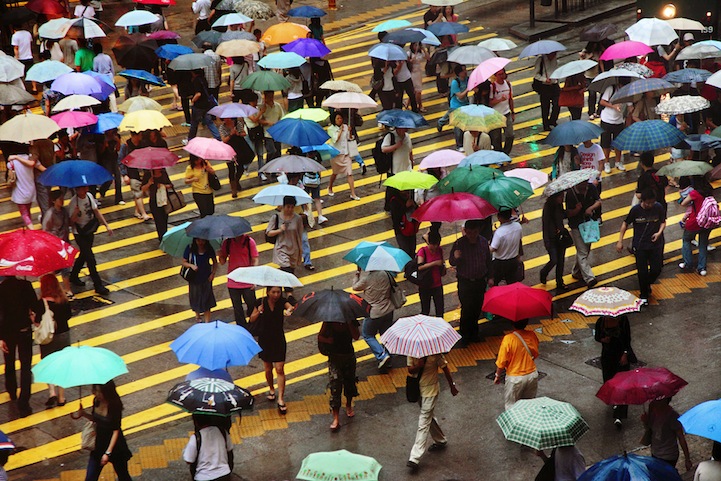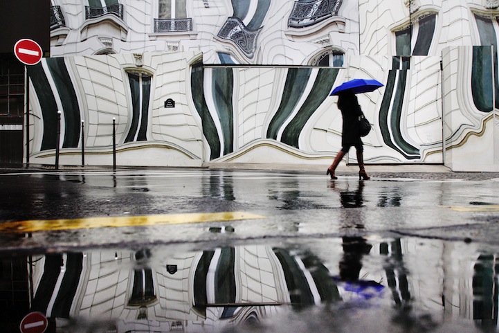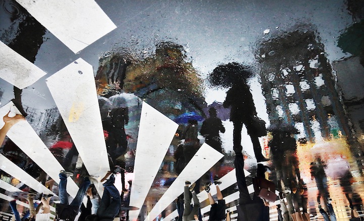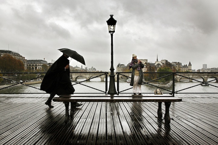 Suite à une commande de clichés touristiques sous le soleil (soldée par un échec), le photographe Christophe Jacrot s’est spécialisé tout naturellement dans la photo sous la pluie et le message qu’elle délivre. Paris, New York, Hong Kong deviennent ces terrains de jeux favoris, des villes au mauvais temps délicieusement mélancolique, visuellement fabuleuses par le jeu des lumières et des reflets, dans lesquels les passants pressés paraissent seuls au monde.