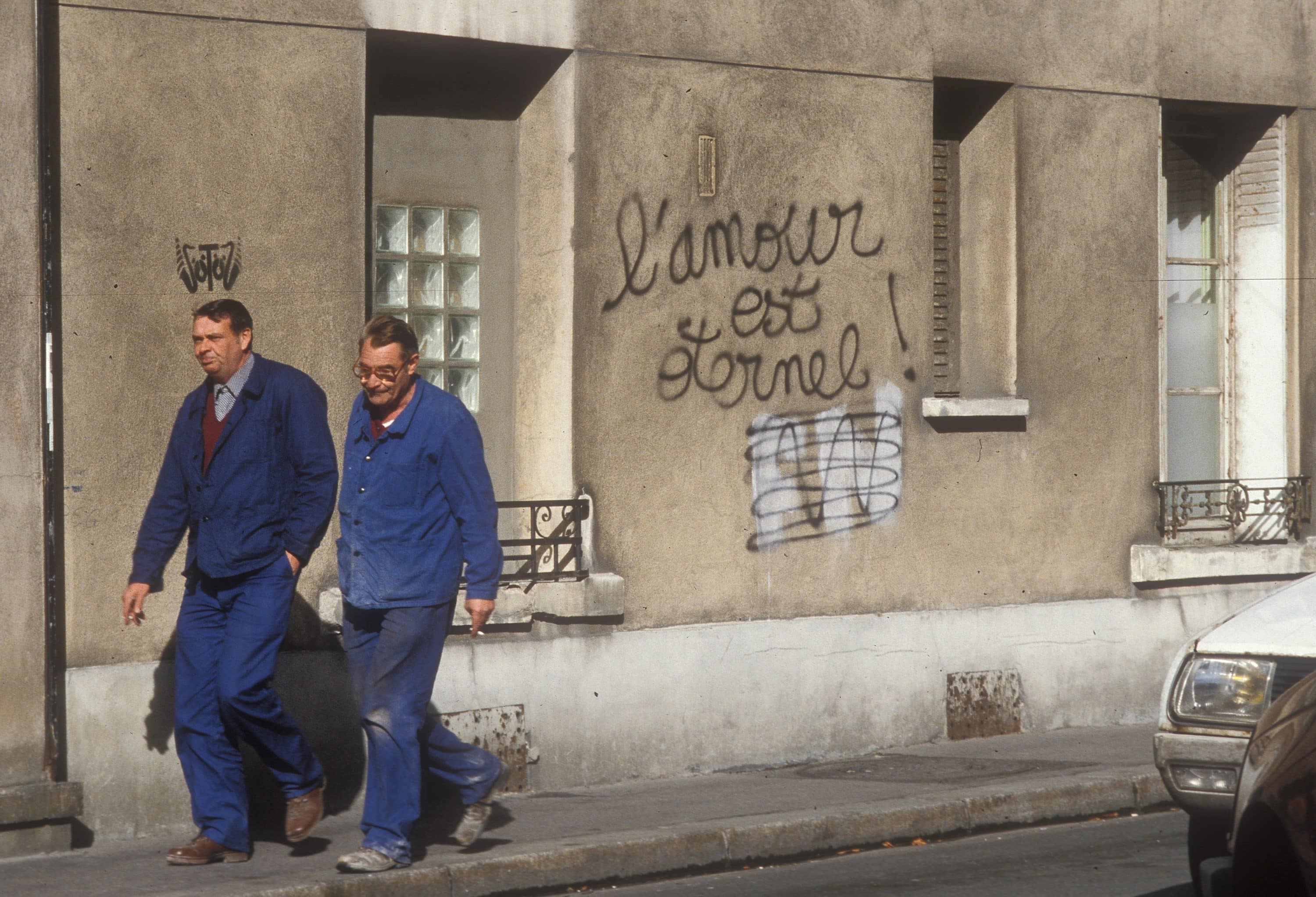 Claude Abron est un reporter de terrain, photographe inlassable, qui au gré de ses missions a pris le temps ou saisi l’instant d’inscrire sur la pellicule des messages voués à disparaître : les graffitis. Durant près de quatre décennies, le reporter a saisi de son objectif les humeurs sociales, les colères, les espoirs, le besoin de s’exprimer… sur des thématiques des plus variées : amour, travail, police, liberté, environnement, politique, argent, logement… Au gré de cette promenade, nous allons rencontrer des hommes et des femmes politiques : De Gaulle, Marchais, Hue, Peillon… Vaclav Havel, Chadli, Haïlé Sélassié… des victimes de la barbarie politique : Rushdie, Kay Patrakoya, Manouchkian… des violences policières comme Malik Ousekin, Riis et Gérard Bastien… mais aussi des philosophes comme Confucius ou Nietschem. Nous avons posé quelques questions à Claude Abron sur son projet au long cours.