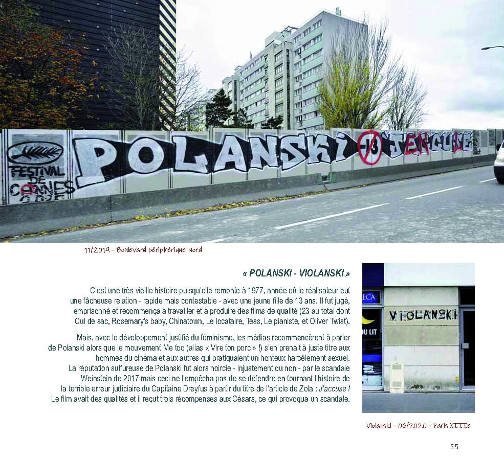 L’Art Mural aujourd’hui s’est généralisé par des fresques sur les grands immeubles, un peu pour détourner l’attention sur cette architecture, aux fins d’embellissement et de donner aux artistes un nouveau terrain d’expression. Ces fresques sont encouragées par les Villes et les Sponsors. Bien sûr, les « Spots » ont la faveur des artistes, ces endroits où l’on trouvait autrefois Singer, Bouillon Kub, Dubonnet, Michelin, etc… Puis apparurent, avec les mouvements féministes, les « collages A 4 par commando ». Vite faits, sans risque et très éphémères. Le graffiti en tant que texte à la bombe a quasiment disparu. L’enlèvement systématique des graffitis s’organise, il a porté ses fruits… et les réseaux sociaux l’ont achevée.