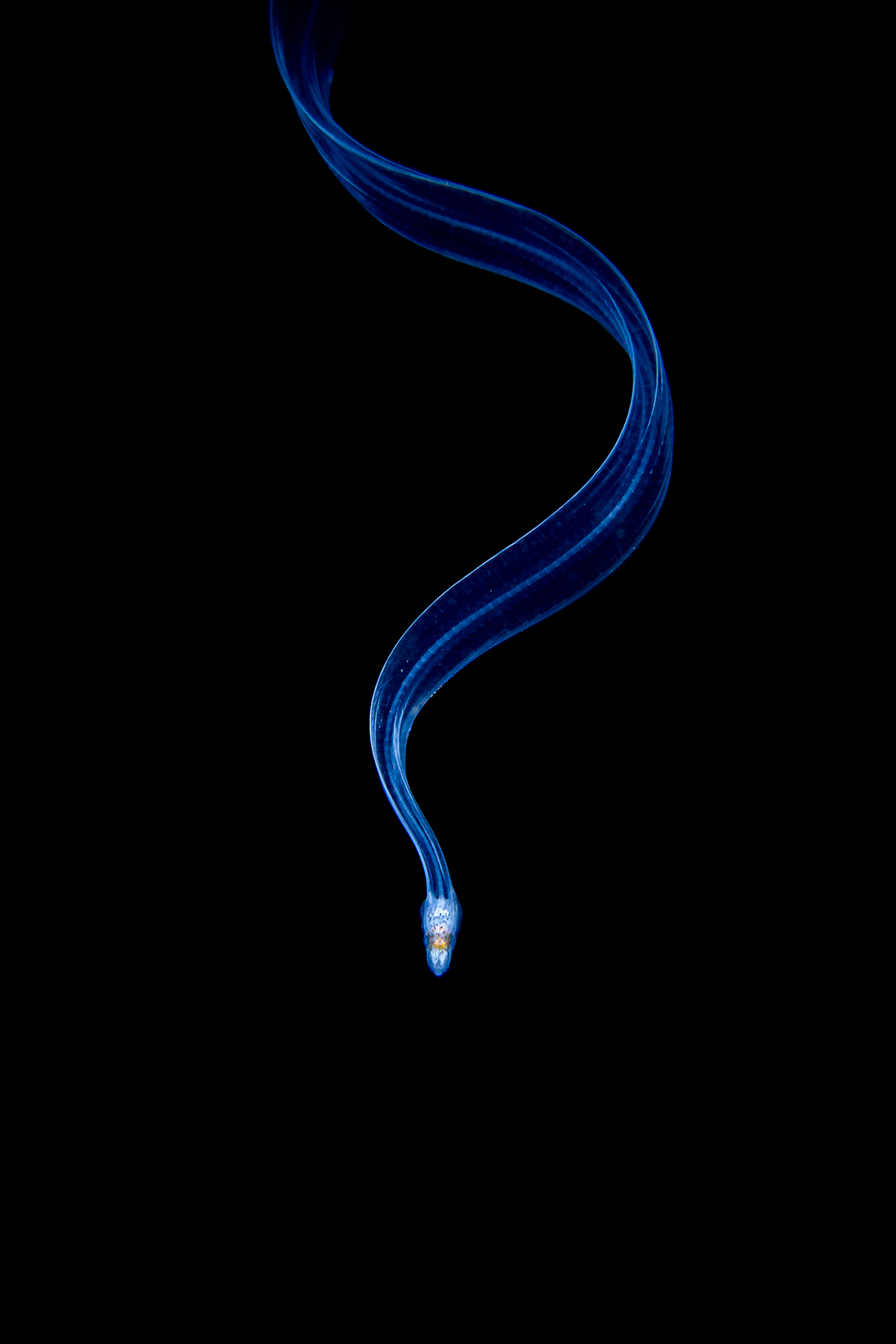 Dans notre palmarès figure aussi la photo prise par Galice Hoarau dans la catégorie « Animals », gagnante de la catégorie en question et de l’édition 2020 du concours. Le cliché portrait une larve d’anguille repérée au large de l’île de Lembeh (Indonésie) pendant une plongée nocturne en pleine mer. La photographie sous-marine la nuit permet d’accéder à un monde inconnu mais comporte aussi des risques, puisqu’elle se passe généralement en eaux profondes ou très profondes.