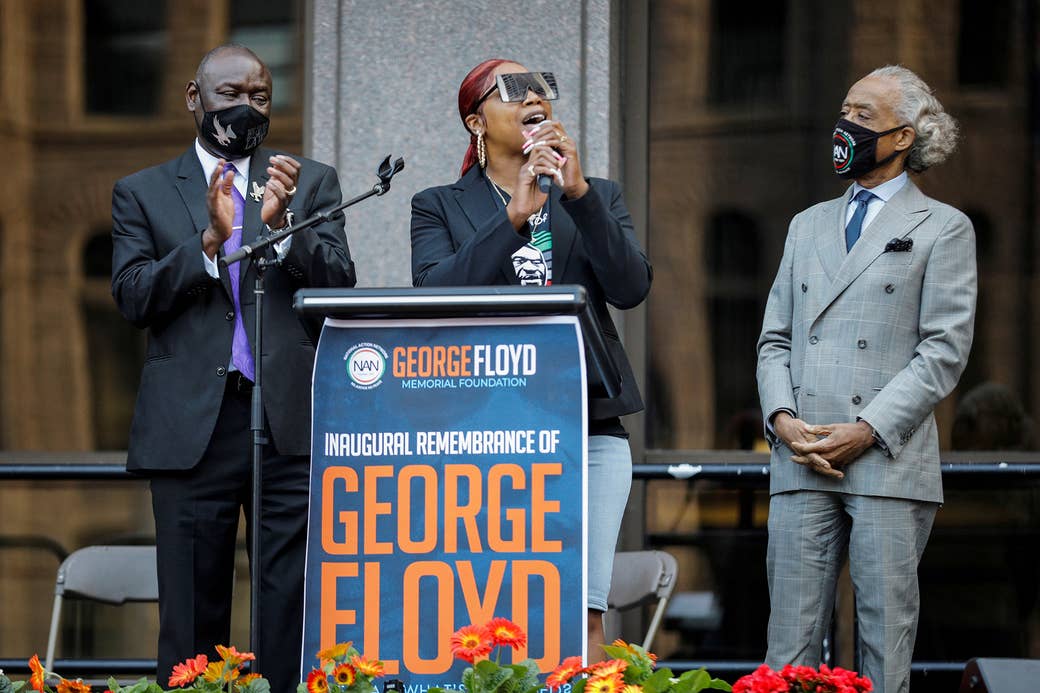 Pendant que la famille de Floyd assistait à une réunion privée avec le président Joe Biden, les membres de la communauté se sont réunis pour une célébration à Minneapolis organisée par la George Floyd Memorial Foundation. L’événement a fait suite à un week-end de commémoration et a réuni des dirigeants locaux, des artistes et des commerçants locaux, ainsi que des participants venus de tout le pays pour se rendre à Minneapolis.