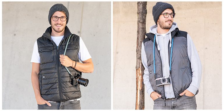 On l’aura compris : ce gilet photo a comme caractéristique d’être chauffant. Mais les concepteurs autrichiens et polonais de ce vêtement avaient en tête de repenser plus globalement le concept.