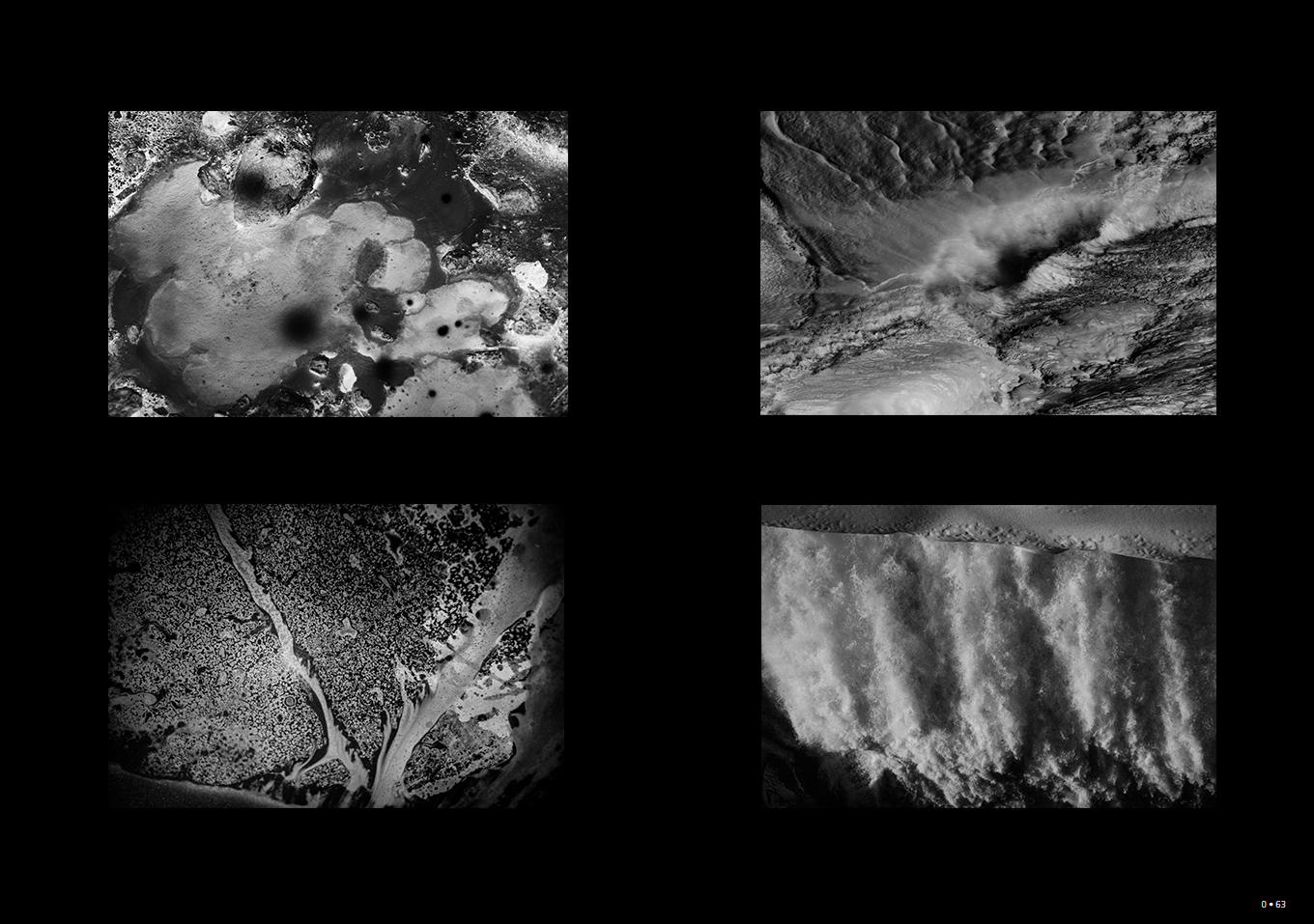 Du 4 au 14 avril 2018, la galerie du Crous de Paris accueille la première grande exposition personnelle de Sandrine Elberg, Poussières silencieuses, couplée à la parution de sa première monographie, Cosmic. L’artiste raconte ces années de travail à rassembler des images et les heures passées dans la chambre noire ou devant son ordinateur : « J’ai joué sur l’altérité du médium photographique, j’ai déjoué les échelles et le rapport micro/macro. Que ce soit lors de l’ascension d’un volcan ou d’un glacier, j’ai voyagé dans différents pays et territoires pour capturer les images de ce livre ».