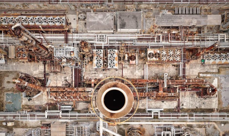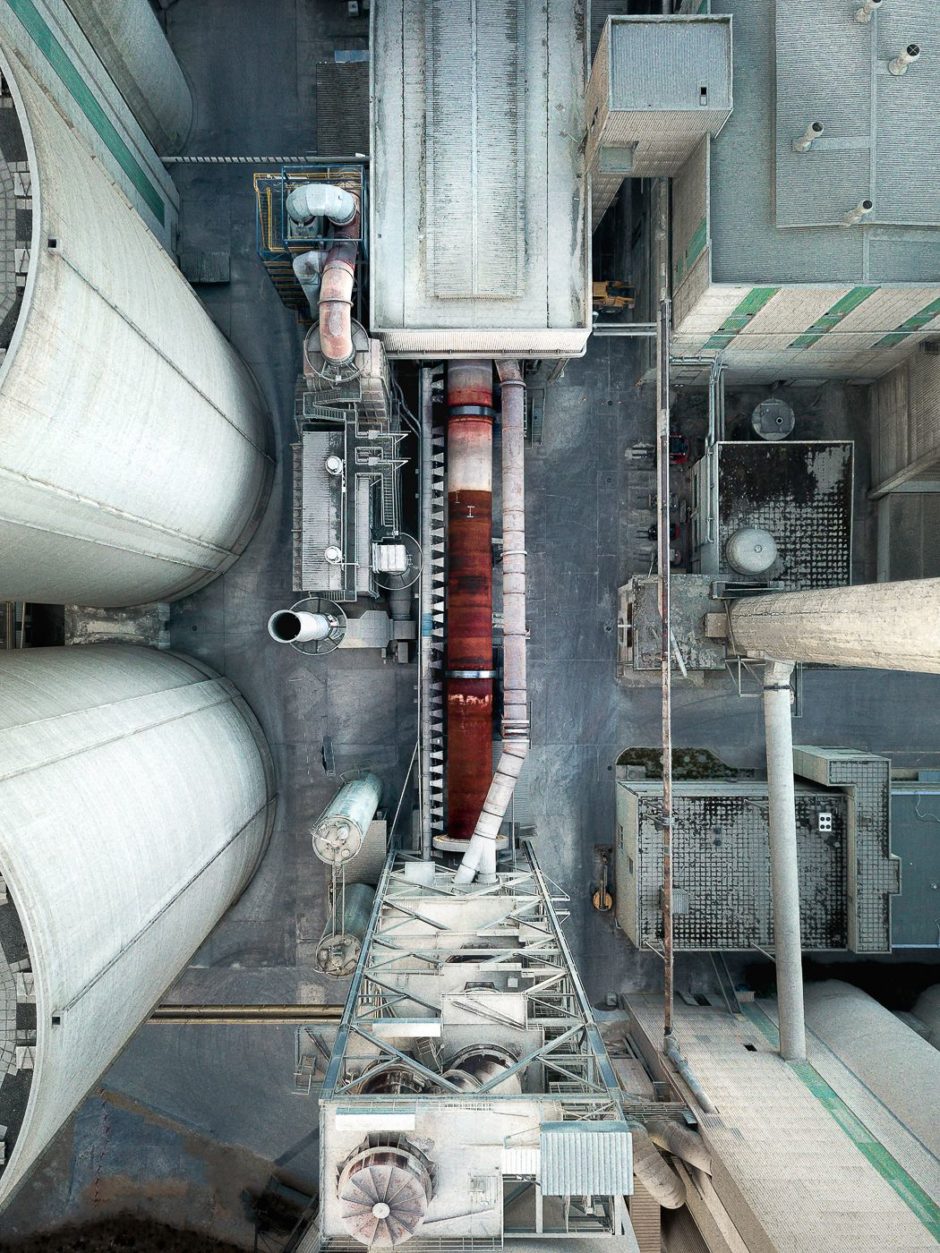 l’Homme renferme derrière ses strictes enceintes la violence constructiviste et mercantile : perçues par le drone, ces territoires dystopiques perdent de leur essence et se transforment en des vagues ruines, des géométries abstraites, ils ne sont autre que des engrenages silencieux, bien loin de la ferveur productiviste que l’on pourrait apercevoir depuis le sol.