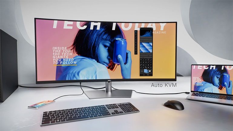 L’écran IPS du Dell UltraSharp 40 curved WUHD propose un confortable affichage en 5 120 x 2 160 pixels, le tout sur un écran incurvé ultra-large. Il est bien sûr possible de passer l’affichage en 4K et ainsi profiter des bords pour d’autres fonctionnalités.