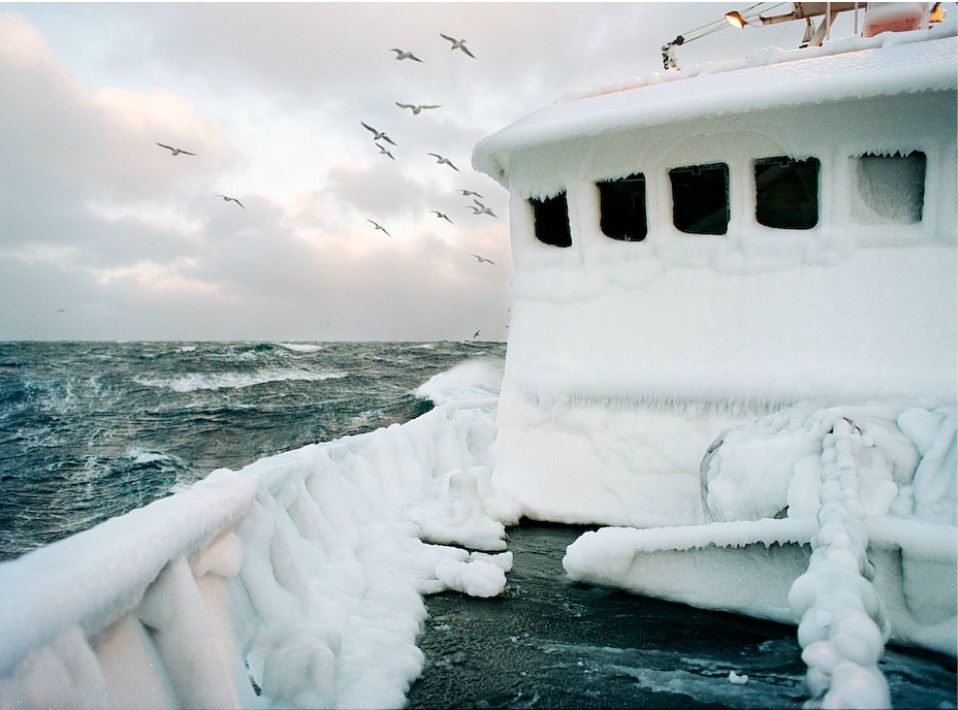 Corey Arnold est un photographe qui travaille autour du monde de la pêche, qu’il connaît bien. Commercial, il a également été matelot sur le crabier f/v Rollo en mer de Béring entre 2003 et 2010. Une mer située au nord de l’Océan pacifique entre l’est de la Russie et le nord du continent Américain.