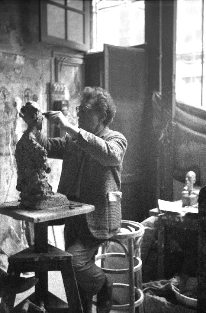 Au terme de ce parcours, une salle entière sera consacrée aux photographies de son atelier, dans lequel il travailla pendant plus de quarante ans. Une exposition dans l’exposition qui permettra d’avoir un regard plus intimiste de son oeuvre. Souvent prises par sa femme, Annette, mais aussi par certains des plus grands photographes de l’époque, tels que Brassaï, Robert Doisneau, Henri Cartier-Bresson, Ernst Sheidegger, les clichés interrogent la postérité de l’artiste et permettent d’en comprendre le processus créatif sous un nouveau point de vue. Le représentant en train de modeler la matière, de peindre, de créer, les images sont une porte ouverte sur le rapport spirituel existant entre un créatif et son oeuvre.