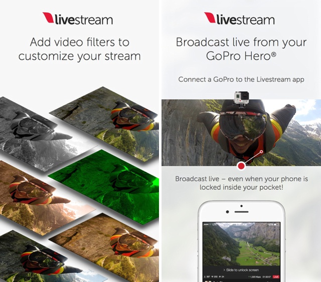 Il est désormais possible de partager vos prises de vues en direct sur internet, via l’application baptisée Livestream qui est disponible gratuitement sur l’App Store. Pour que celle-ci puisse fonctionner, il faut que votre GoPro soit équipée du WiFi et que votre téléphone soit connecté en 4G.