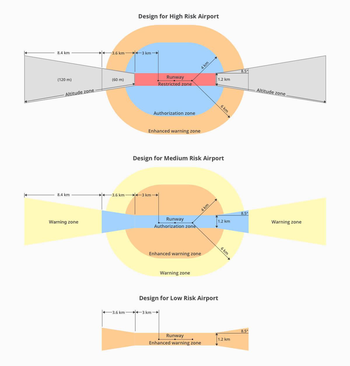 GEO 2.0 crée des zones de sécurité détaillées en trois dimensions couvrant les pistes des aéroports – ainsi que leurs trajectoires d’approche et de décollage – et utilise désormais des polygones pour délimiter précisément les sites sensibles, plutôt que de simples cercles utilisés précédemment. Cela s’applique aux 13 pays couverts à l’origine par le système GEO de DJI, ainsi qu’à 19 pays supplémentaires qui étaient couverts par un système moins avancé. Le nouveau système reflète mieux le risque de sécurité dans ces zones et est plus flexible dans les zones à faible risque, en permettant par exemple aux utilisateurs ayant les autorisations nécessaires d’effectuer des vols de drones dans des zones parallèles aux pistes d’aéroports.