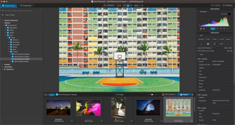La bibliothèque de PhotoLab 5 se dote d’ailleurs d’une fonctionnalité longtemps attendue par ces mêmes photographes professionnels : la gestion complète des données EXIF et IPTC. Les métadonnées peuvent donc désormais être éditées dans PhotoLab, puis lues par des logiciels tiers après l’export des photographies.