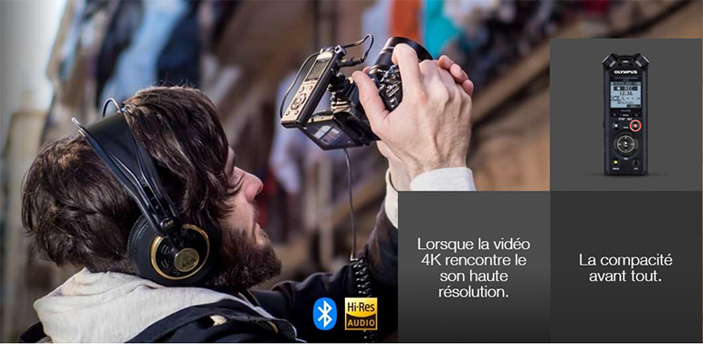 L’Olympus LS-P4 est un enregistreur audio compact qui constitue une solution intéressante pour enregistrer le son de vos vidéos. En plus de sa compacité, il peut enregistrer au format FLAC, bien connu pour sa qualité.