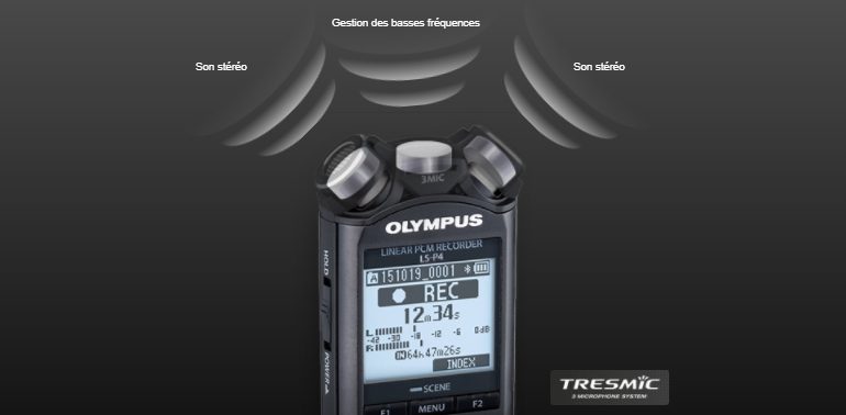Il est équipé d’un système de micros TRESMIC 3, qui couvre un spectre de fréquences complet de 20 Hz à 20 kHz. Ces micros permettent un enregistrement PCM linéaire de qualité supérieure à celle d’un CD. Que le son monte un peu fort ou qu’il soit au contraire trop faible, la capacité du LS-P4 à gérer les niveaux de pression acoustique jusqu’à 120 dB sans écrêtage, son système d’annulation du bruit à 2 micros ou la normalisation incorporée permettent de préserver la qualité de l’enregistrement.