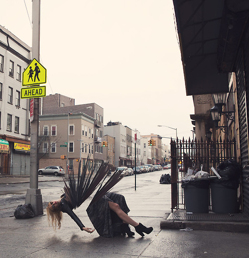 A mi-chemin entre un travail de mode et une performance urbaine, cette série photographique apporte une vraie poésie et un choc visuel.