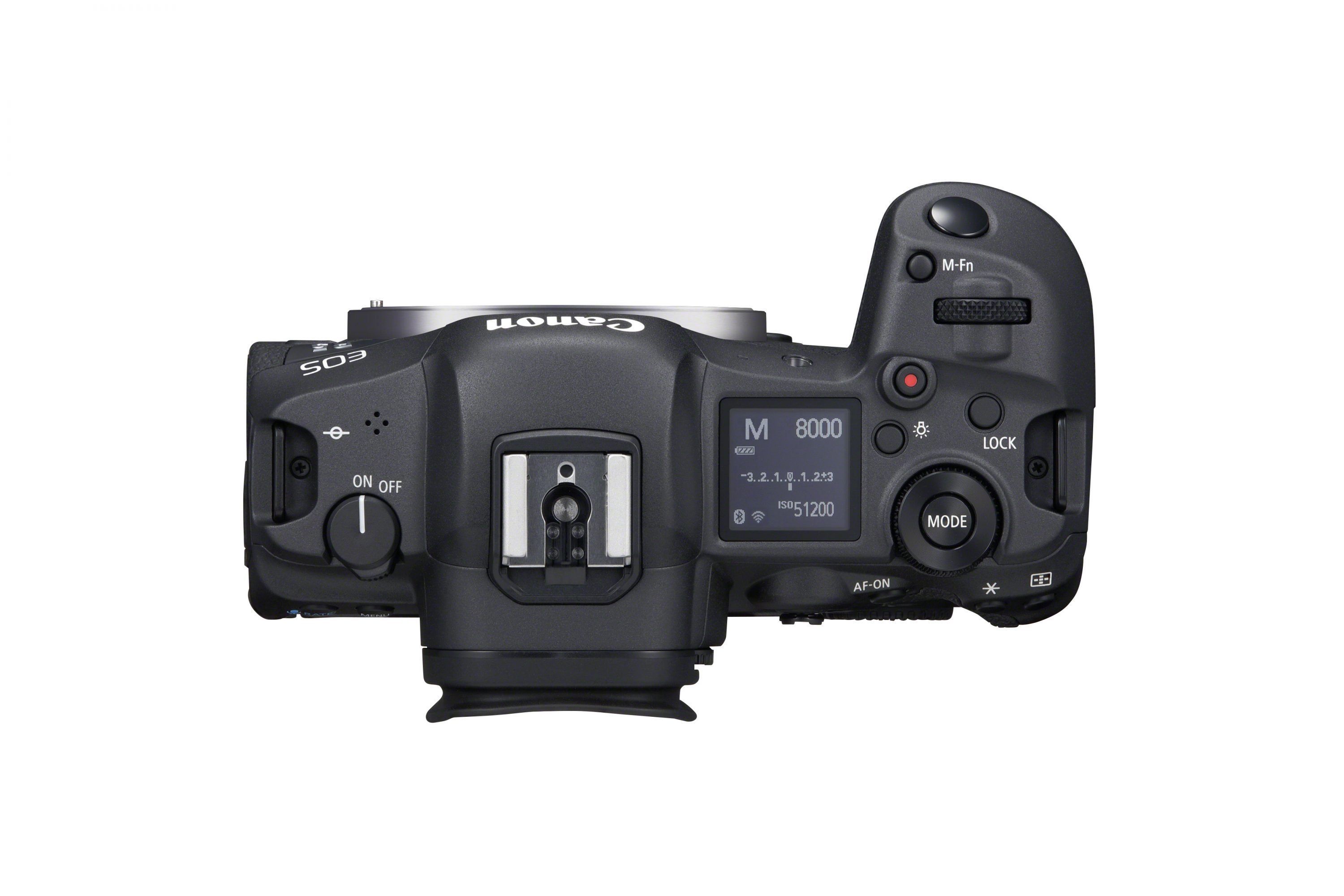 Boitier orienté « pro », le R5 dispose d’un écran de contrôle sur le dessus. C’est le seul de la famille pour le moment à le proposer. Il dispose d’un écran tactile de 3 pouces (environ 7,6 cm) d’une définition de 2,1 millions de points. Quant au viseur électronique il s’appuie sur la technologie OLED, avec une taille de 0,5″ pour une définition de 5,69 millions de pixels, une couverture de 100% et un grossissement de 0,76x. Le rafraîchissement à 120 ips garantit un affichage fluide.