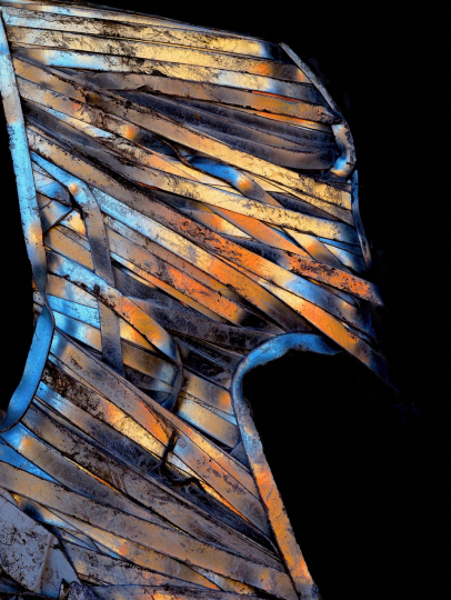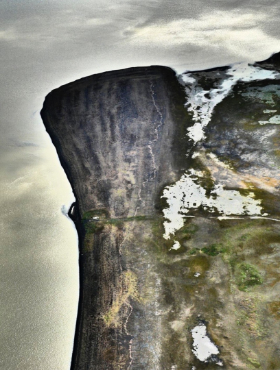 Ces formes abstraites deviennent des créatures fantastiques devant l’objectif du photographe. Tel un archéologue, il extrait la richesse d’un monde naturel et éphémère pour créer un bestiaire magique et des portraits de divinités aux résonances bouddhiques, inuit ou africaines. Vues aériennes ou macrophotographies fractales, l’immensément petit et l’immensément grand se côtoient dans une cosmogonie inspirée de celle chinoise du Yin et du Yang, fondée sur les 5 éléments : terre, eau, feu, bois et métal. Cet artiste multi-disciplinaire, ingénieur de formation, ne renonce pas à une certaine forme de spiritualité dans son travail.