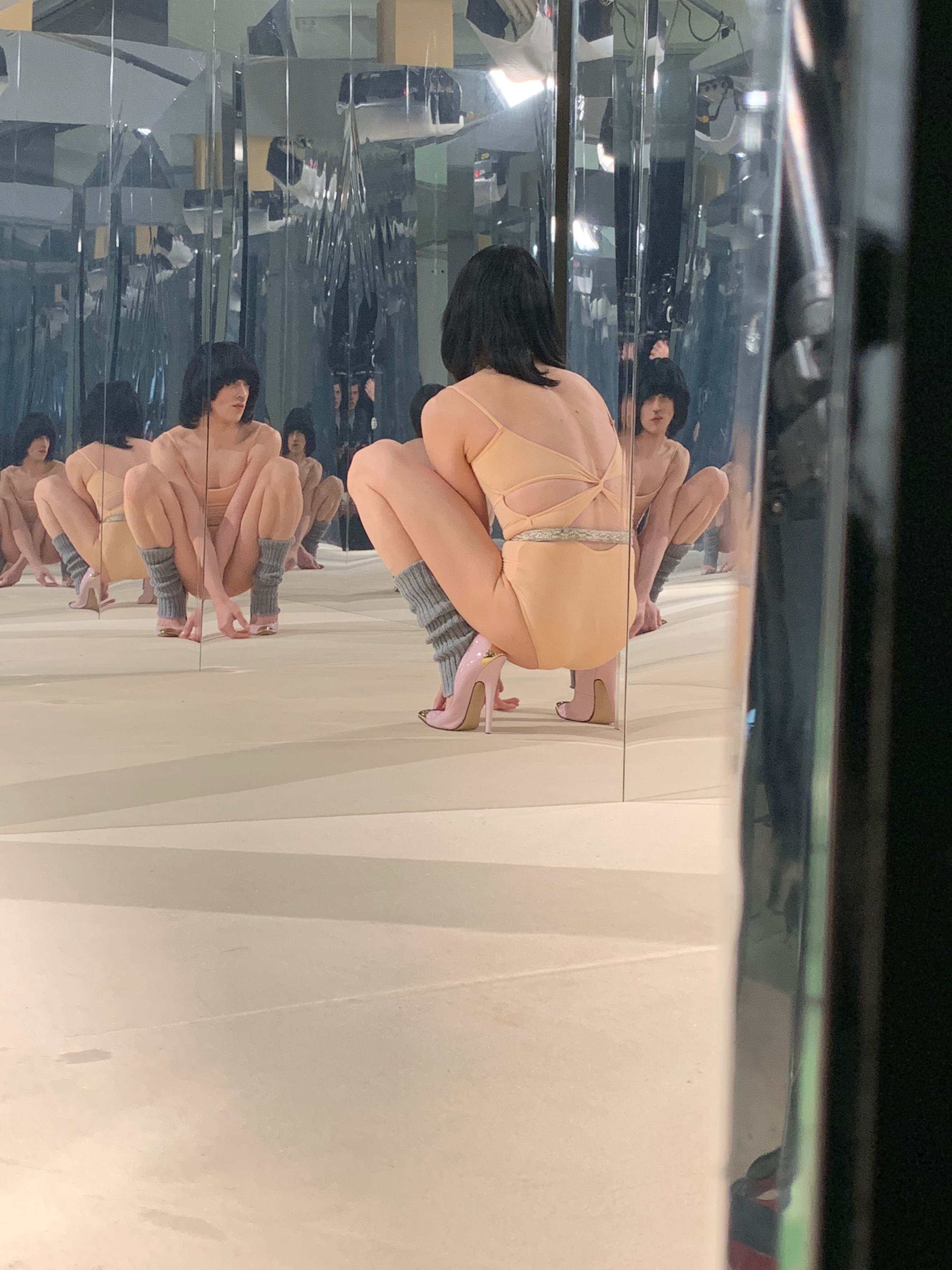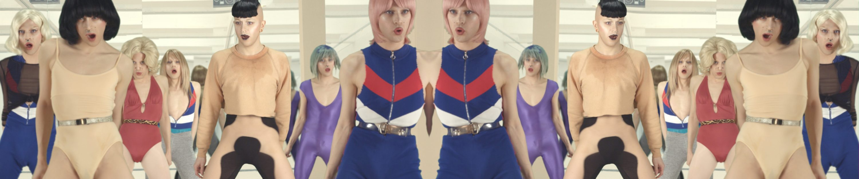 « Le corps-Trans d’aujourd’hui devrait rendre hommage au fitness des années 80 ! Son ambiguïté, ses transformations corporelles, la transgression de ses corpsaugmentés et sculptés par l’accomplissements personnel » explique Brice Dellsperger. A travers cet effet de miroirs kaléïdoscopiques, l’artiste nous plonge au coeur de l’image avec Jean Biche, artiste performeur qui se produit sur la scène parisienne du Manko Cabaret, qui interprète ici tous les personnages.