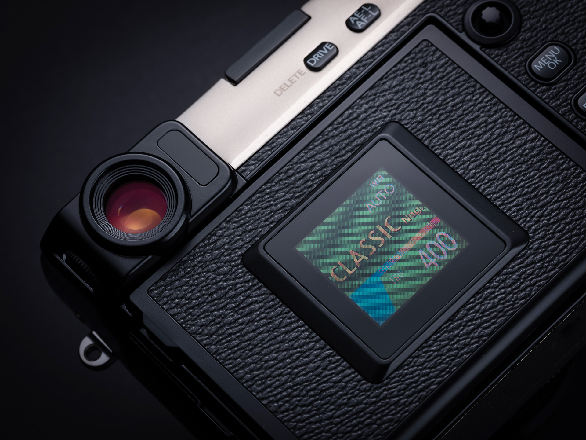 Mais là où nous pensons que le discours de Fujifilm est le plus intéressant c’est dans sa volonté d’offrir aux photographes un retour au source de la photographie, en passant par une gestuelle à l’ancienne, très inspirée de l’argentique et dans laquelle la mécanique de visée passait par le viseur uniquement. Pour ce faire, Fujifilm propose un écran arrière audacieux. Fermé, il laisse apparaître un écran LCD couleur non rétro-éclairé de 1,28 pouces sur lequel il est uniquement possible d’afficher les paramètres de prises de vue ou la simulation de film Jpeg et la sensibilité. Exactement comme lorsqu’au temps de l’argentique on glissait un bout de l’emballage de la pellicule avec la sensibilité et le type de film. Il est néanmoins toujours possible d’utiliser l’écran en mode Live View. Là, le photographe a droit à une dalle tactile LCD de 3 pouces de 1,62 millions de points. Cet écran bascule uniquement vers le bas sur 180° et permet une visée poitrine.
