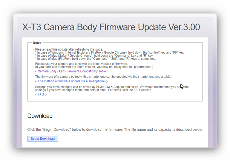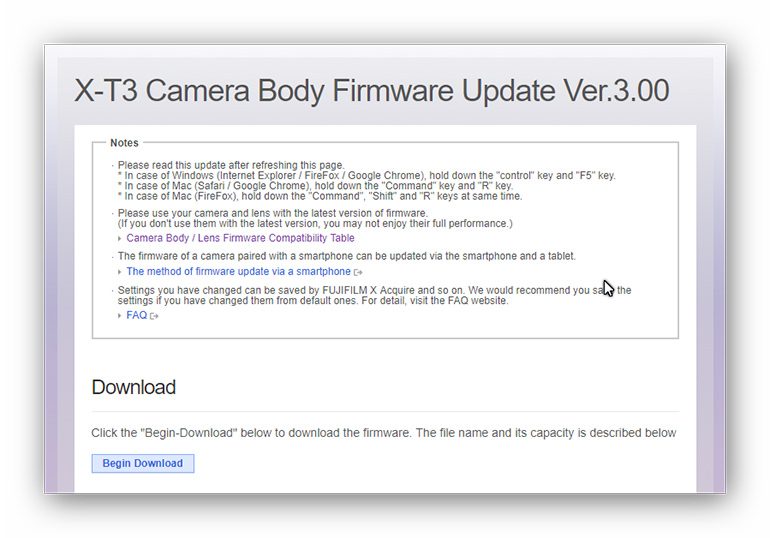 Par sécurité, mieux vaut toujours sauvegarder ses réglages avant une mise à jour. Cela peut être réalisé facilement avec le logiciel gratuit Fujifilm X Acquire, à télécharger ici.